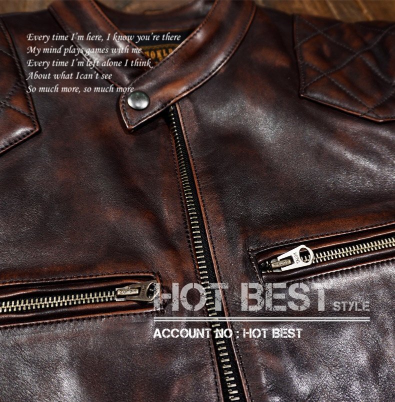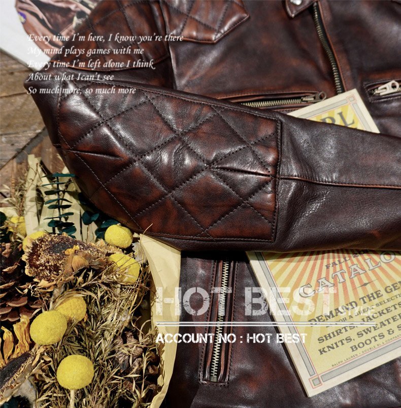 1.3mm 茶芯カウハイド 50's パテッド シングルライダース メンズ 革ジャン レザージャケットPADDED 牛革Y1221/XXL