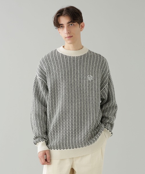 参考商品名:ヘリンボン地柄プルオーバーニット