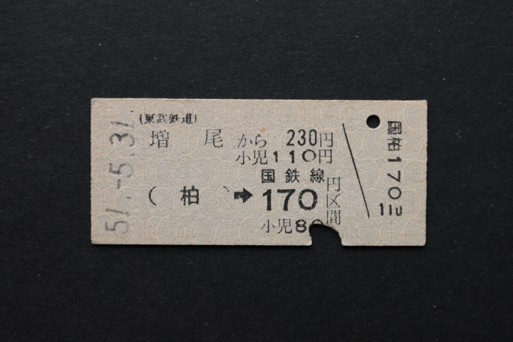 東武鉄道 乗車券 増尾から 230円 柏→170円区間