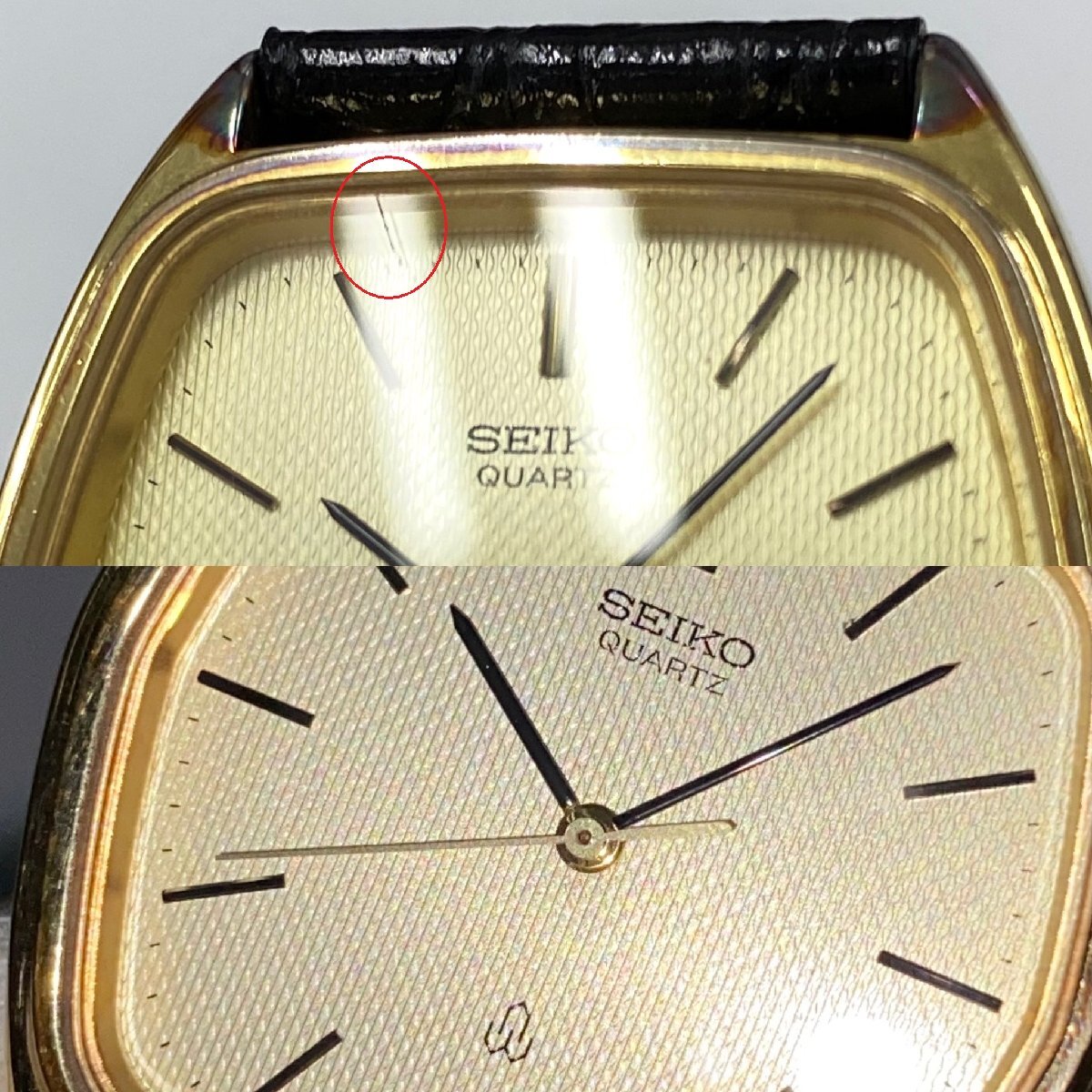 ・11時に僅かな傷 【文字盤】 ・秒針にくすみ 【ケース】 ・全体的な擦れや傷、打痕、ゴールドカラーの縁や角に変色 【リューズ】 ・擦れ、腐食や緑青、薄らくすみ汚れ |