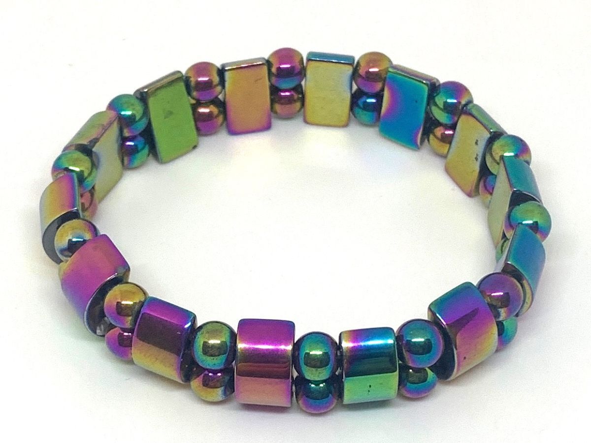 【Premio Fortuna】ヘマタイト磁気ブレスレット レインボーカラー 内径約17.5センチ Lb7ZFmQ8 066