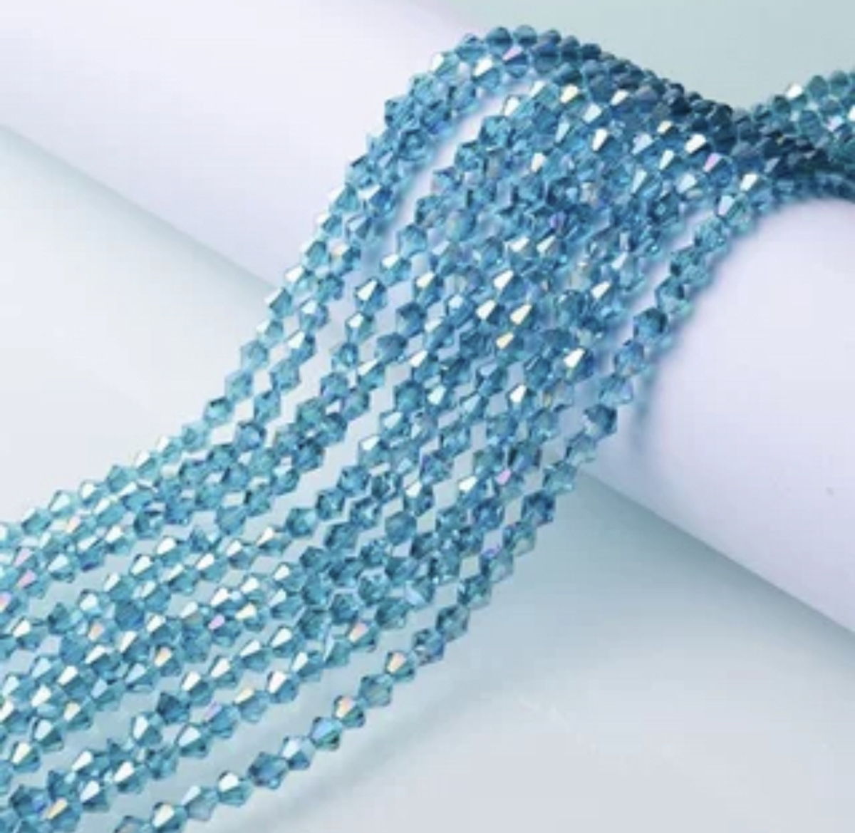 送料込3本組 2mmそろばん型ビーズ ハンドメイド クリスタル ガラス ピーコックブルー