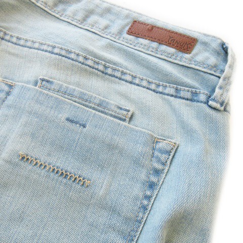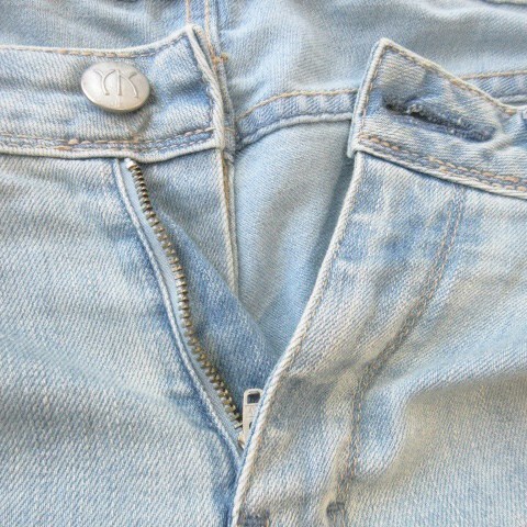ヤヌーク YANUK デニムパンツ ジーンズ テーパード ストレッチ ウォッシュ加工 薄手 28 青 ブルー /AO18 レディース