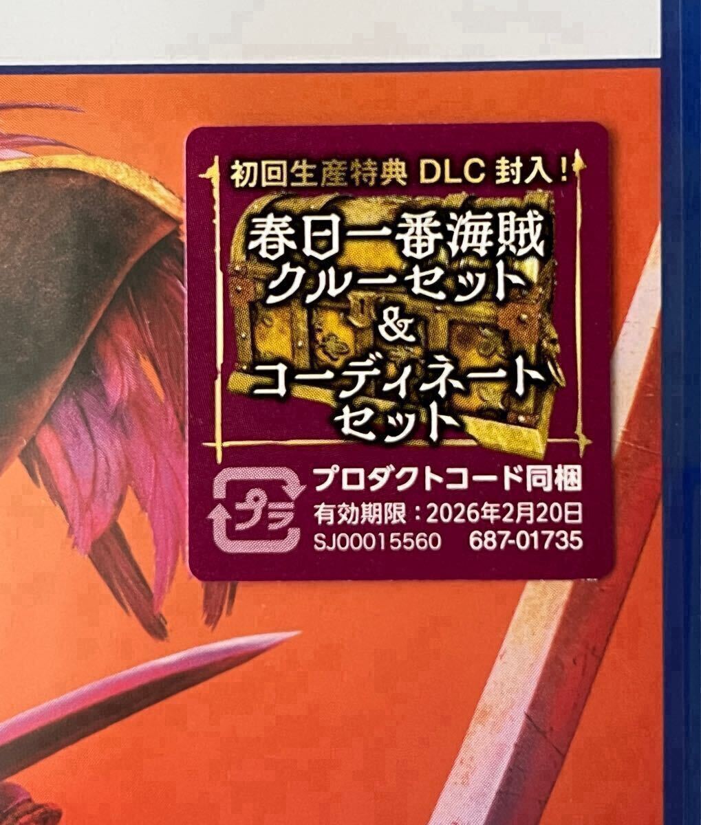初回生産特典のDLC「春日一番海賊クルーセット&コーディネートセット」プロダクトコード同梱