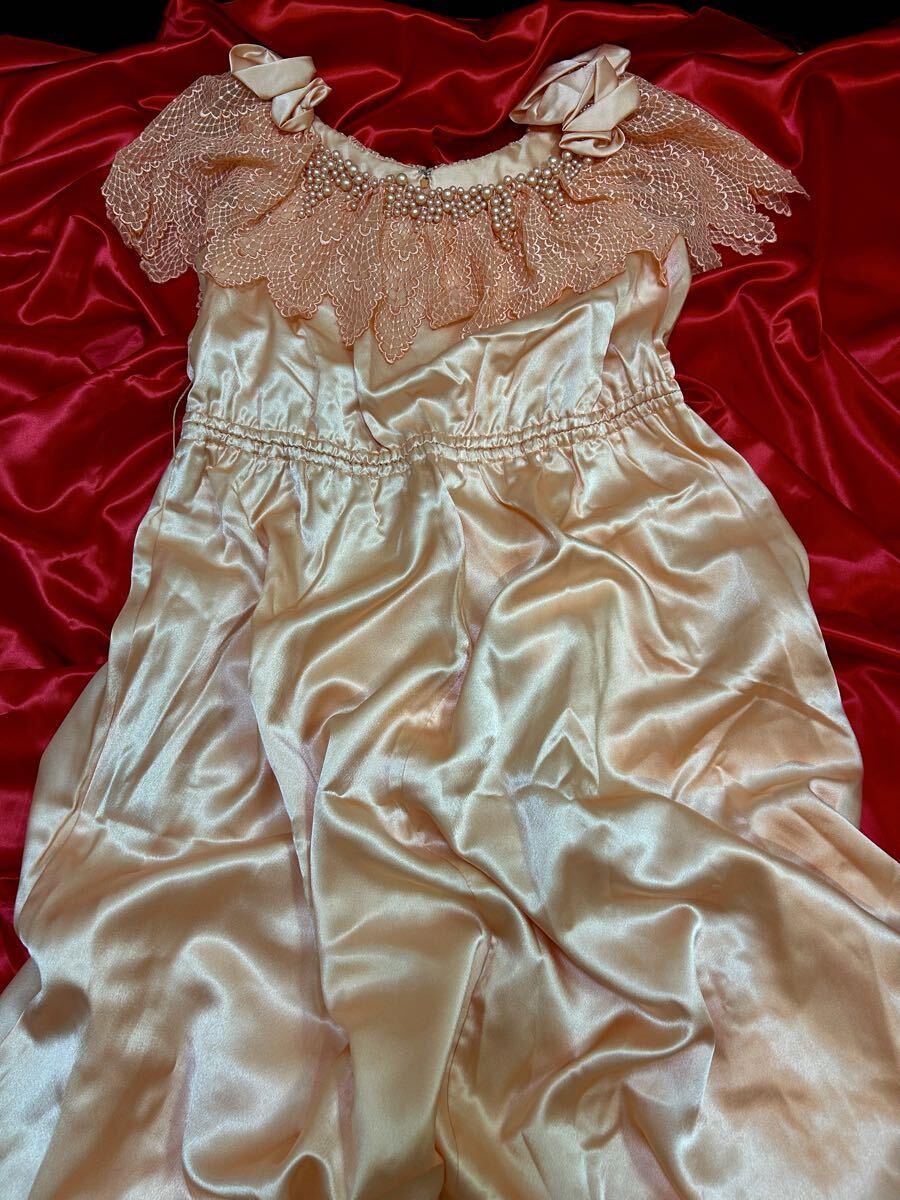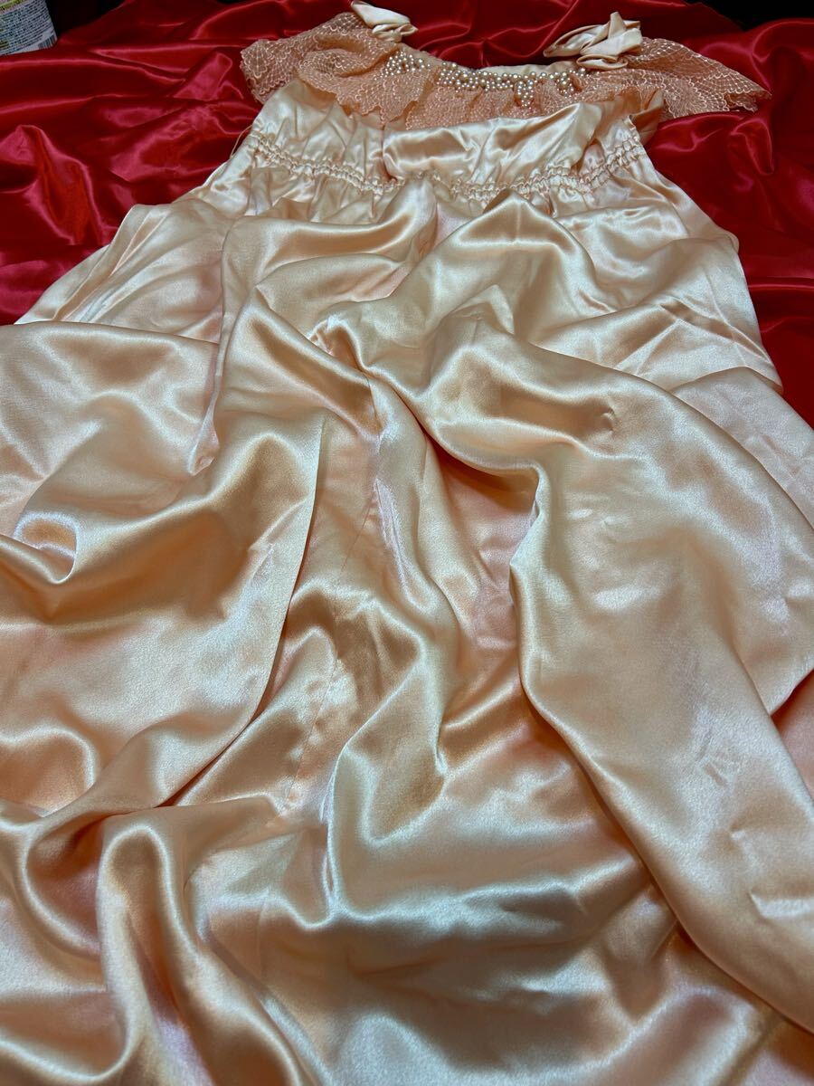 ツルツルつやつやとした、なめらかな光沢サテン素材のロングドレスです。