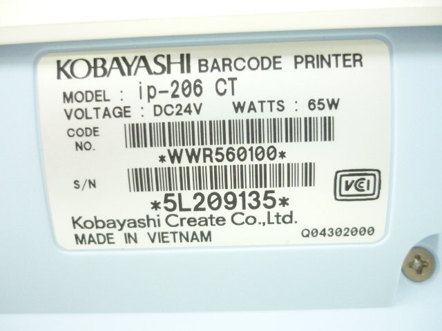 ★KOBAYASHI/小林クリエイト★バーコードラベルプリンター★ip-206 CT★USB・LAN★カッター付★印字良好★現状渡し★a2730