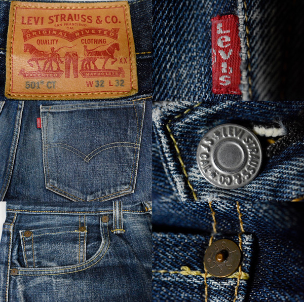 クラシックなボタンフライの 501(R) CT ジーンズは、ウエスト位置で履き、