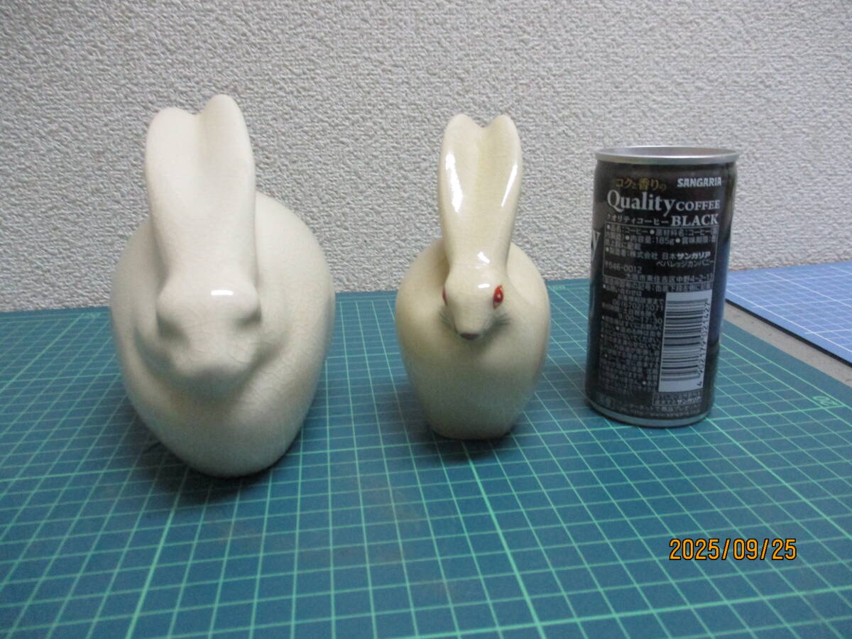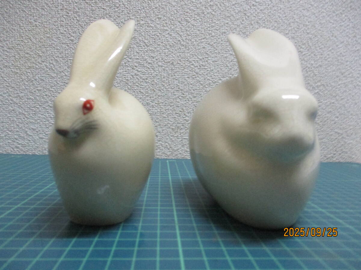 白薩摩焼 うさぎ 置物2点(錦江陶芸・桃伯) 検 アンティーク、コレクション 工芸品 陶芸 日本の陶磁 薩摩