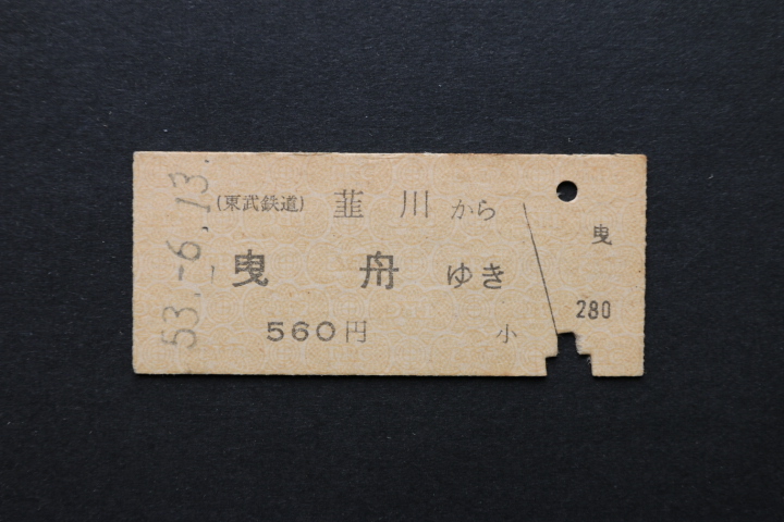 東武鉄道 乗車券 韮川から 曳舟ゆき 560円