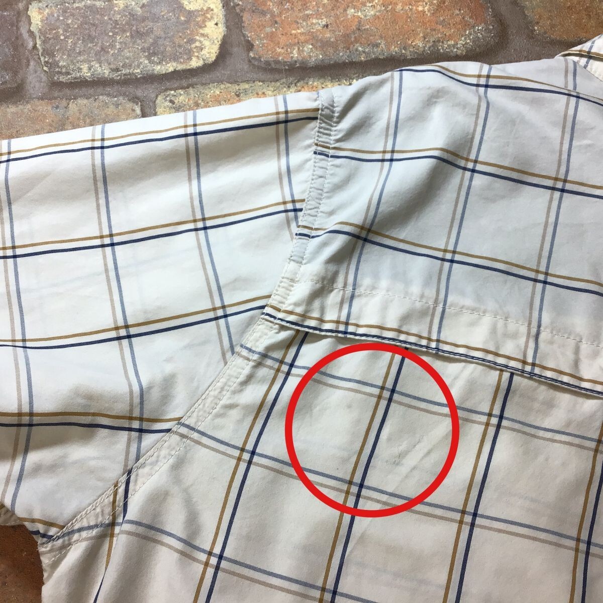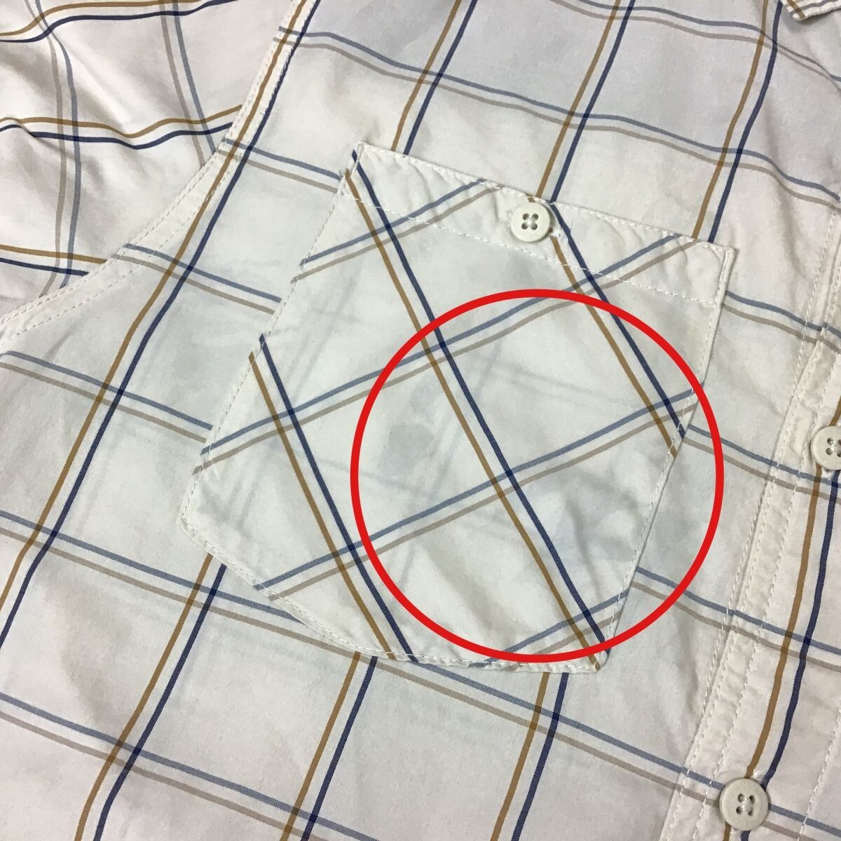 右胸ポケットに薄い着色(画像8)、