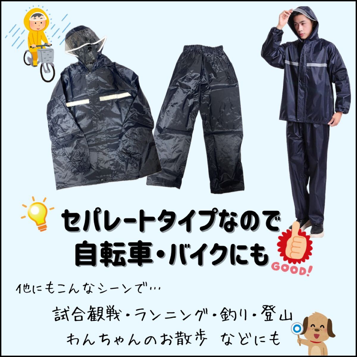 #レインコート #雨具 #レインウェア #セパレートタイプ #反射テープ付き #バイク用レインコート #自転車通勤 #アウトドア #登山 #釣り #犬の散歩 #ネイビー