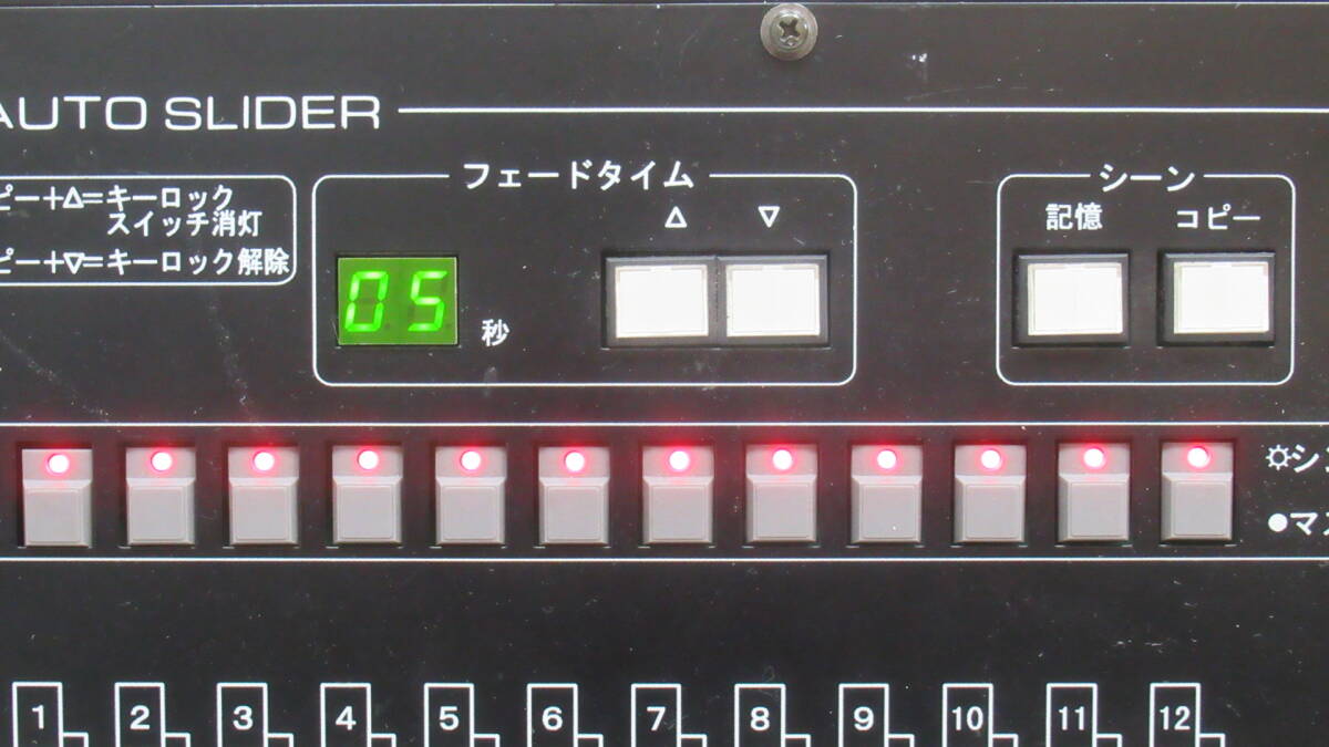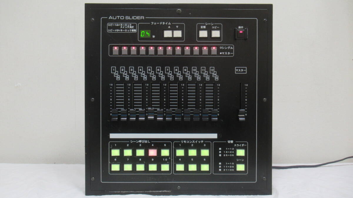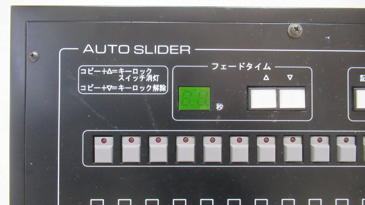 ◆商品説明◆ | AUTO SLIDER 照明コントローラー 【外観:程度良】 【状態:ジャンク】 ・キズ等あります。 ・フェードタイムカウンターの右の数字が欠けます。(画像でご確認ください) 【付属品】 ・無し 他にも画像が御座いますので宜しければご覧になってください。 AUTO SLIDER |