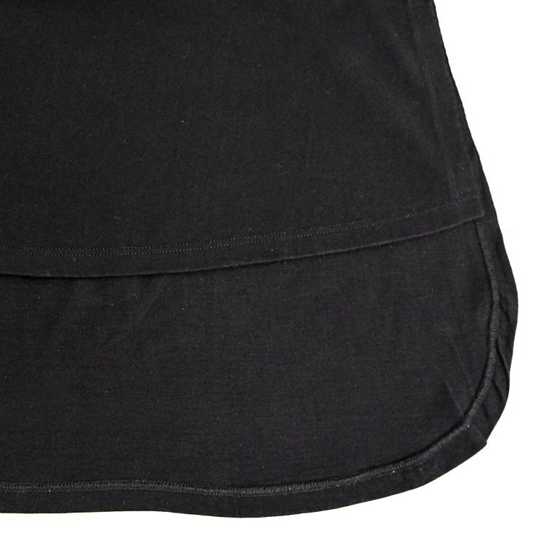 状態説明 | 目立ったヨゴレや襟元、袖口、裾などの伸びは感じられませんが、多少サイドスリット周辺にシワが見られます。 また、お色目が黒なので、多少、チリやホコリの付着がございます。 ※フレグランの残り香がございます。 |