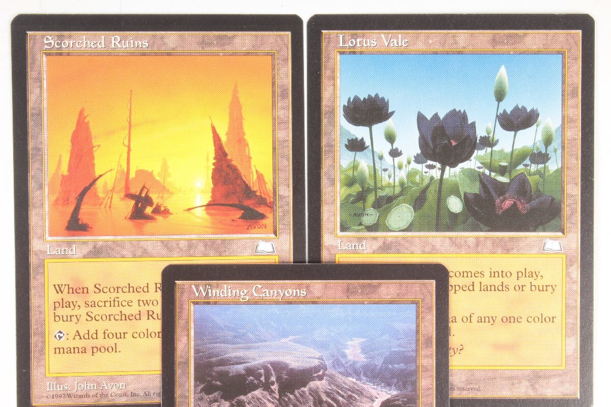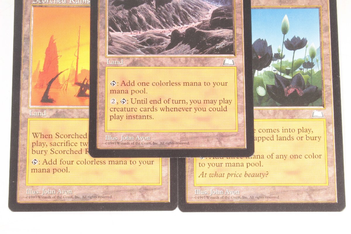 MTG 〇 土地カード3枚セット 英語版 黒枠 [焦土の廃墟/Scorched Ruins] [ロータス・ヴェール/Lotus Vale] [曲がりくねった山峡/Winding Canyons] マジック・ザ・ギャザリング |