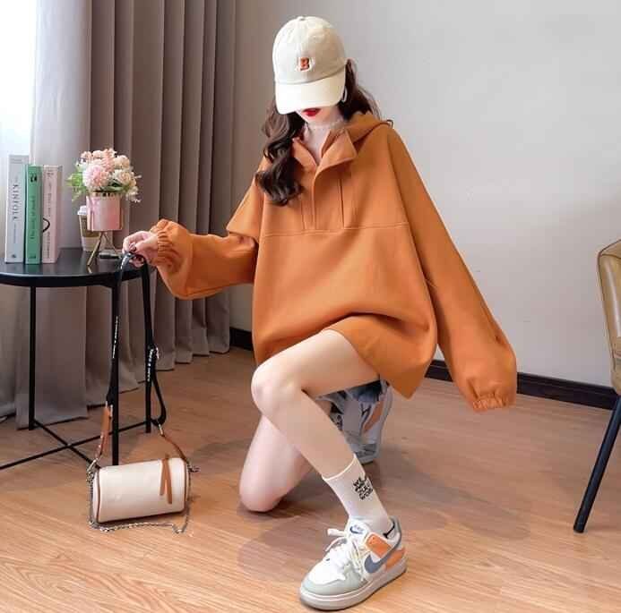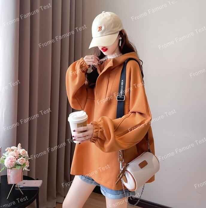 長袖パーカー 秋冬 カジュアル レディース 大きいサイズあり 2XL オレンジ