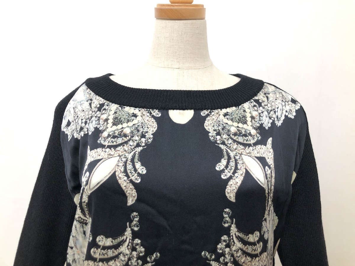 【MARCOBOLOGNA マルコボローニャ】プリント柄シルク切替 ハイゲージニットワンピース (レディース) size38 ブラック系 伊製 ◇17LN6065◇