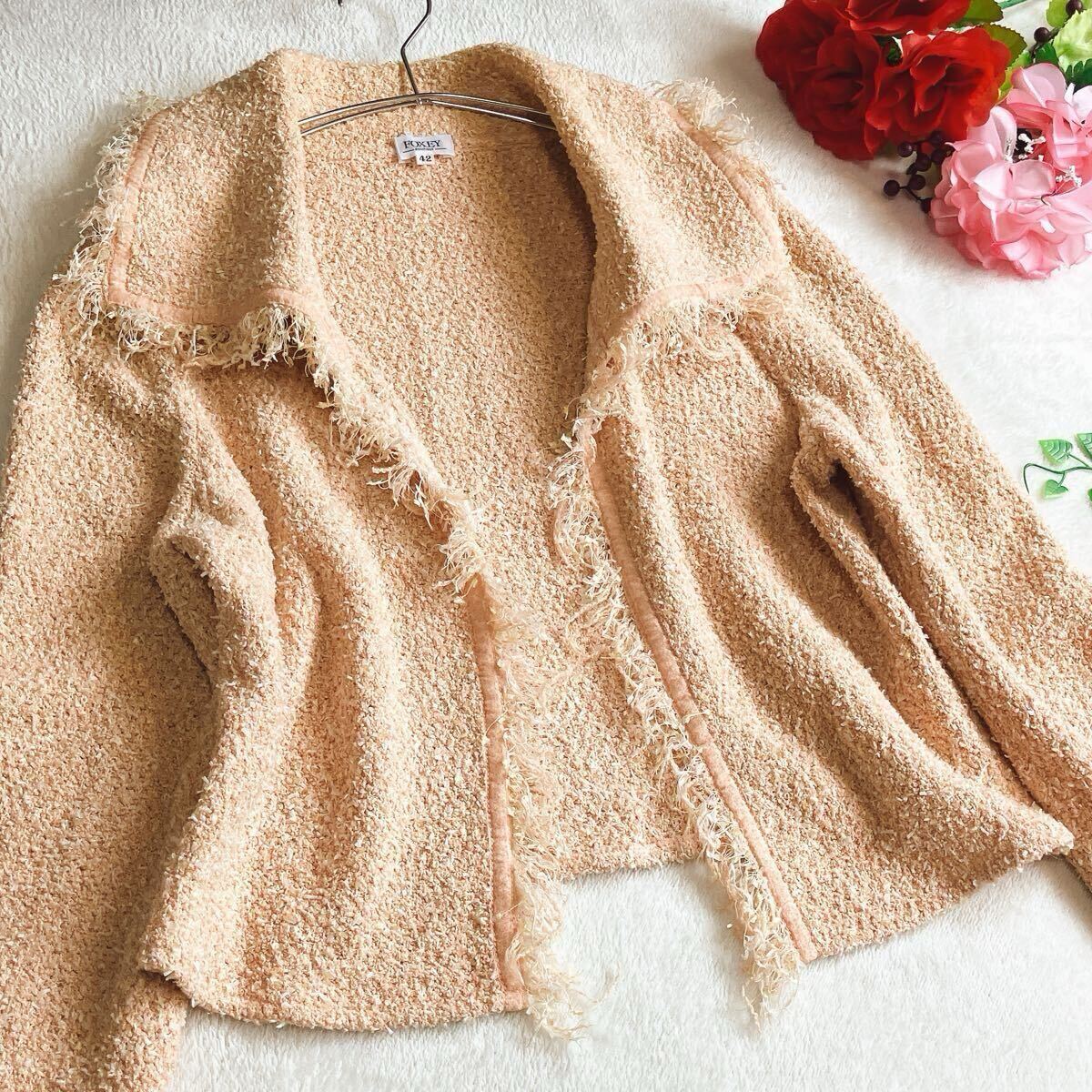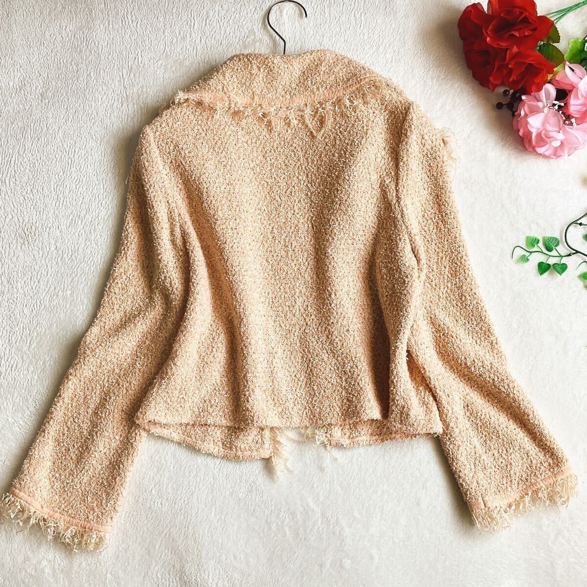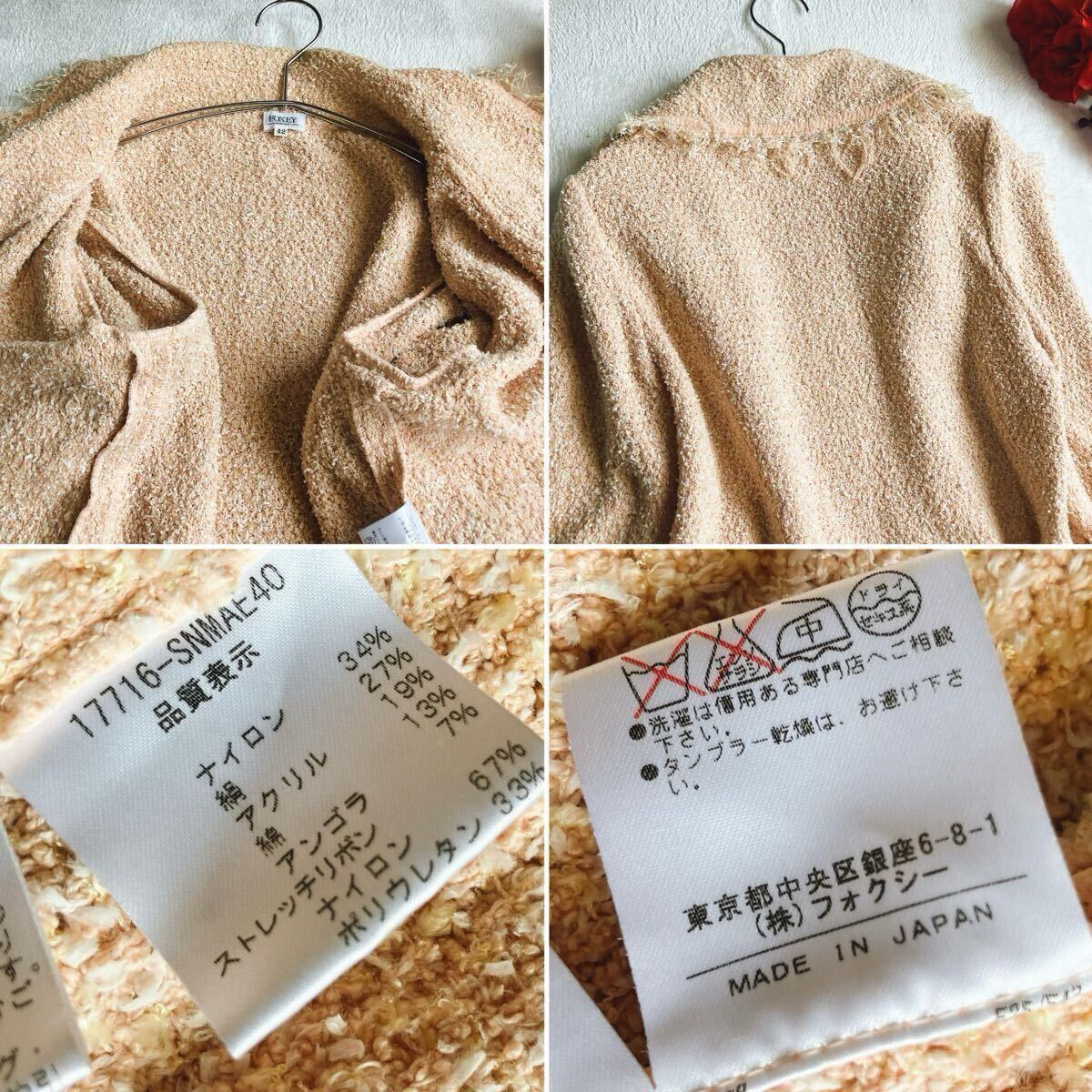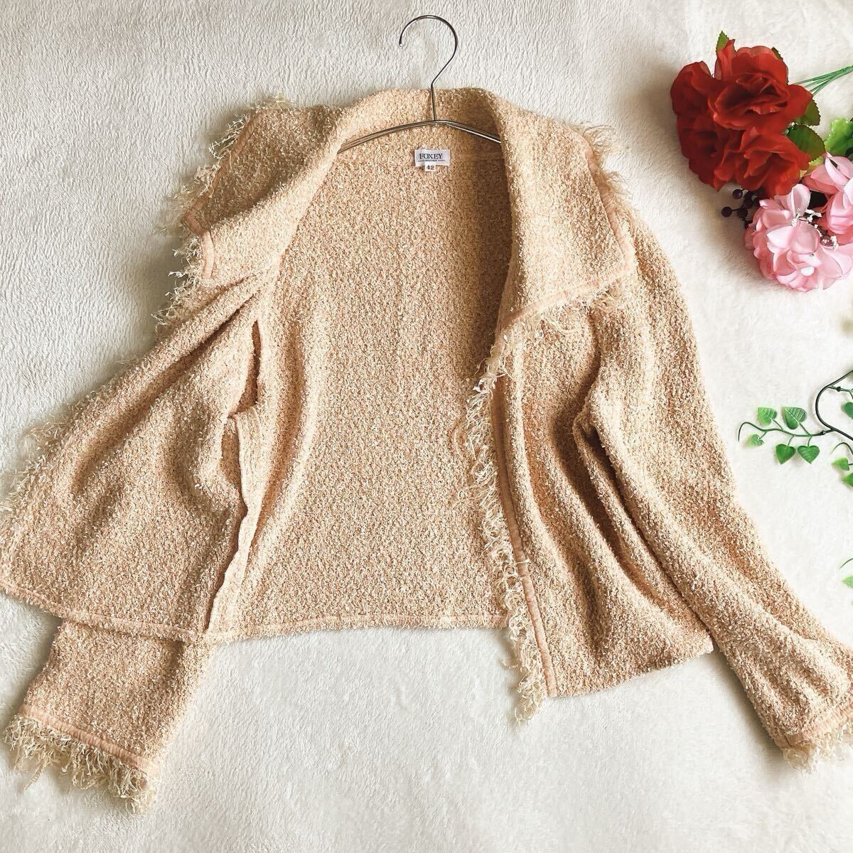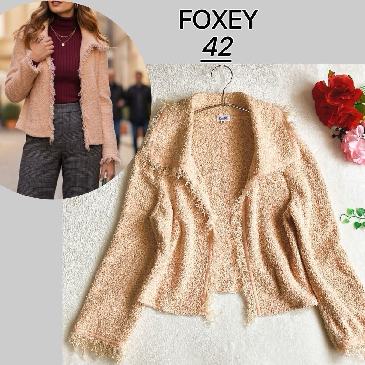 FOXEY フォクシー★シルク アンゴラ混 ビッグカラー テーラードジャケット フリンジ ライトオレンジ系×マルチ