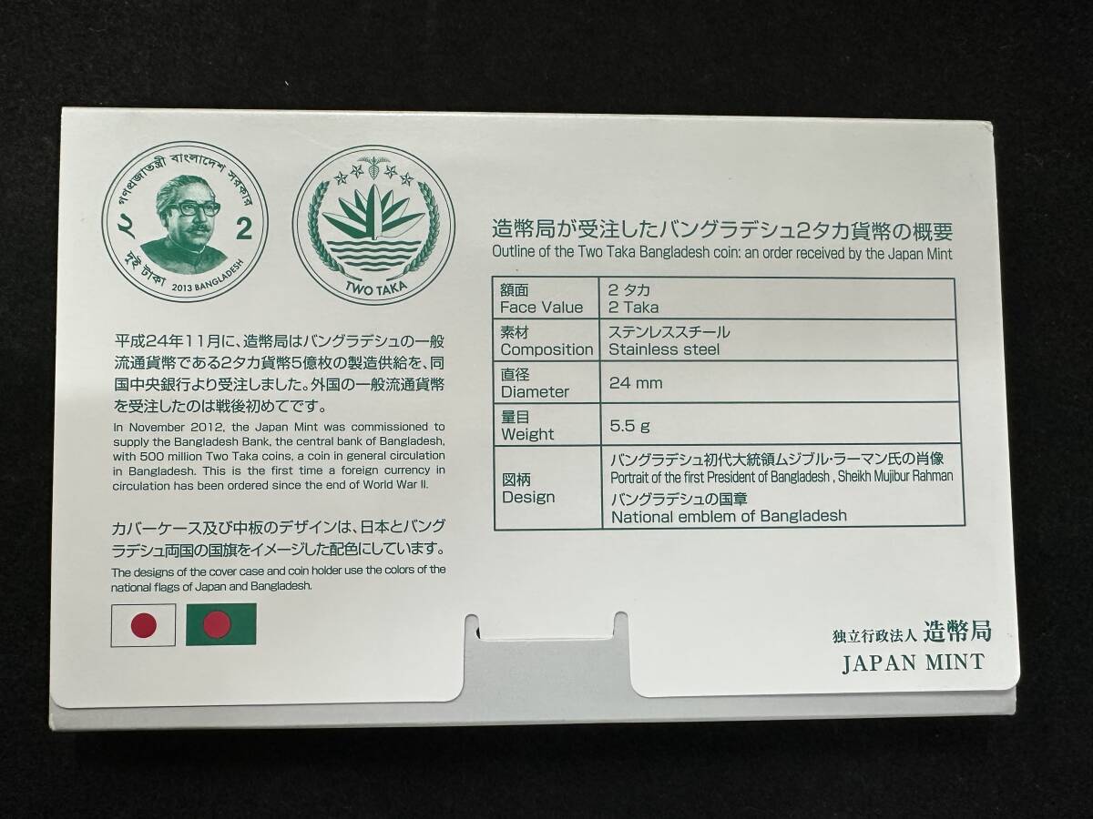 • 外箱(裏面)には、バングラデシュ2タカ貨幣の概要や、硬貨製造受注の経緯が記されており、資料としての価値も非常に高いです。