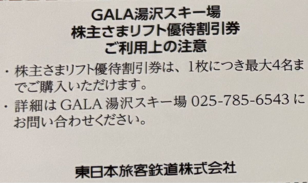 GALA湯沢スキー場 株主さまリフト優待割引券 4枚