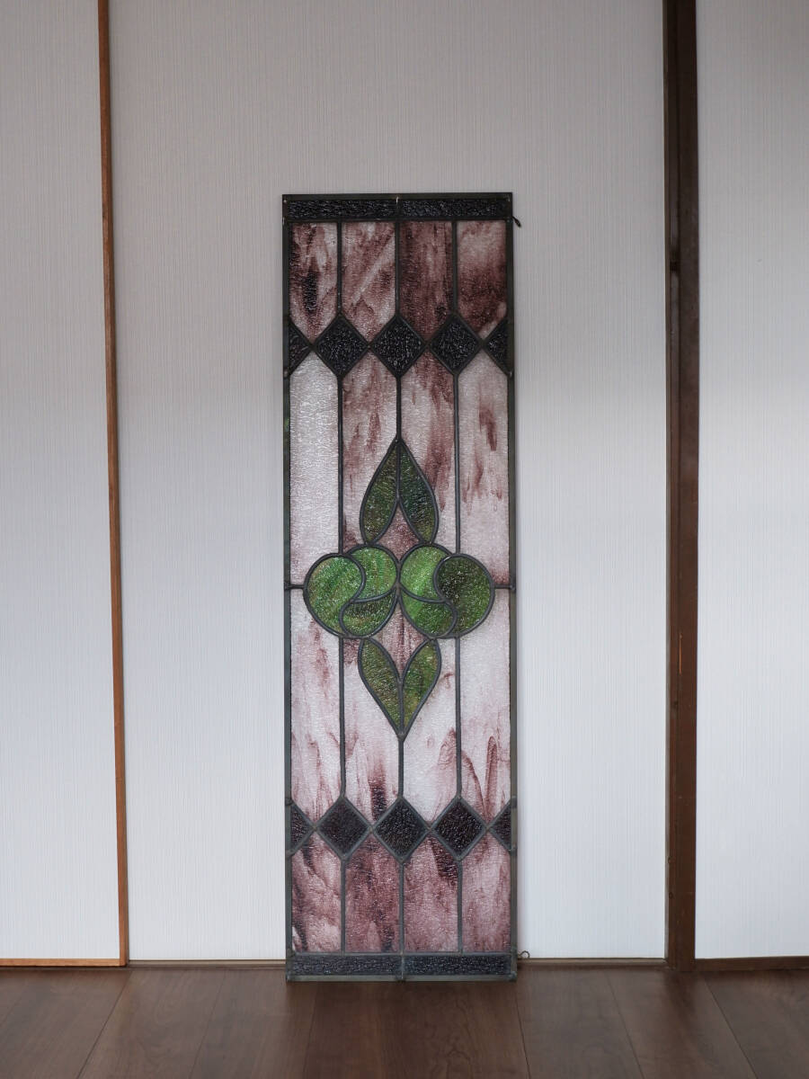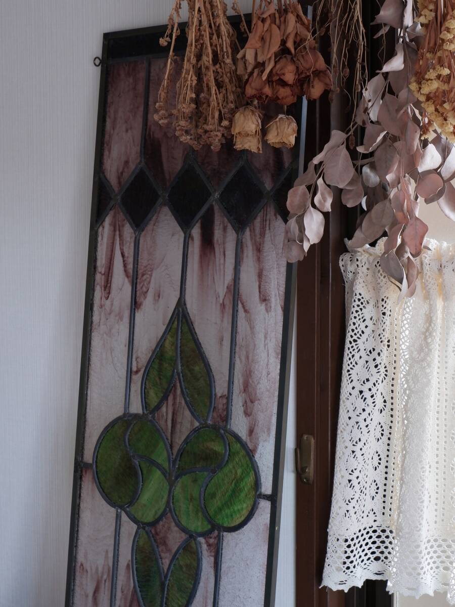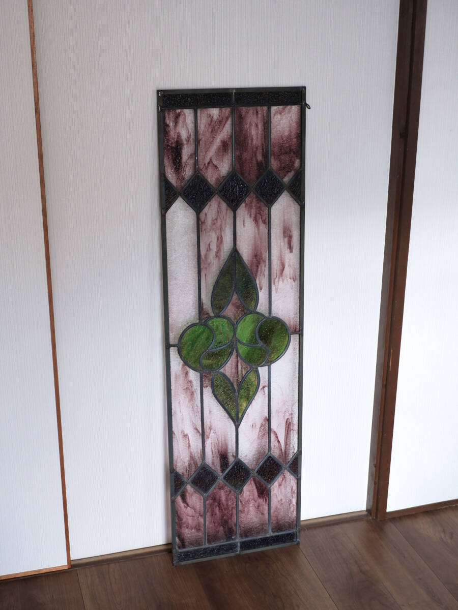 【青枠】アンティー ステンドグラス ガラス 大きいサイズ 飾り 窓 ドア 建具 古道具 時代物 美術品Q1968