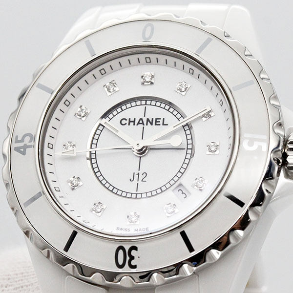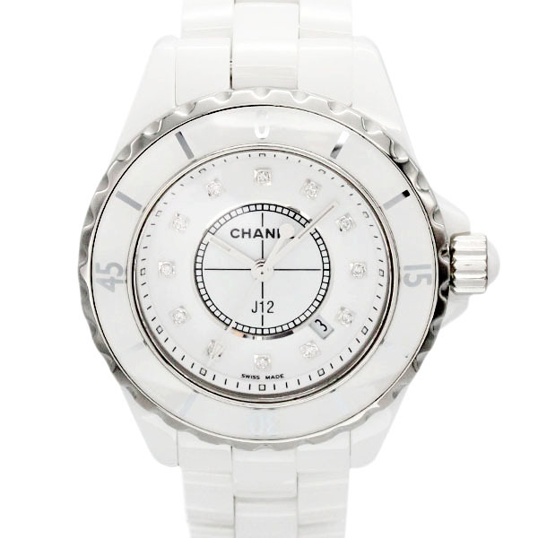 シャネル CHANEL J12 ホワイトセラミック/SS 12Pダイヤモンド ホワイト文字盤 レディース腕時計 クォーツ 女性 プレゼント ブランド