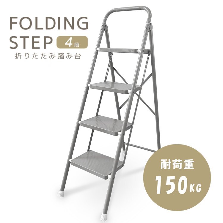 新品未使用 脚立 踏み台 4段 折りたたみ ステップ台 耐荷重150kg おしゃれ 滑り止め コンパクト ステップチェア ステップスツール はしご