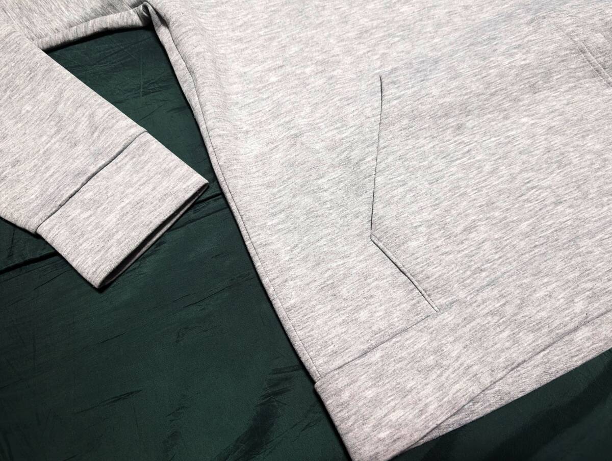 保温性と通気性を兼ね備える特殊3層構造生地を使用した、軽量スウェットパーカ。