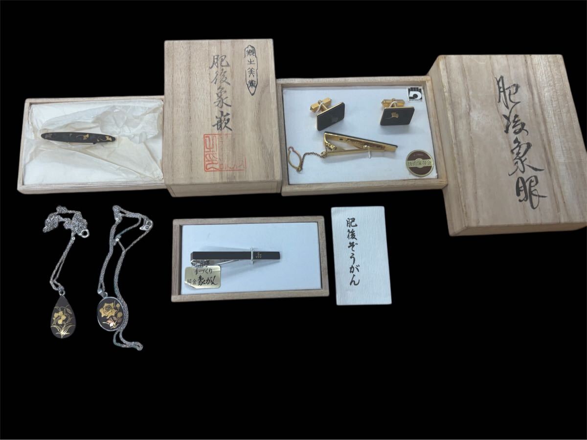 肥後象嵌 カフス タイピン ネックレス5点セット
