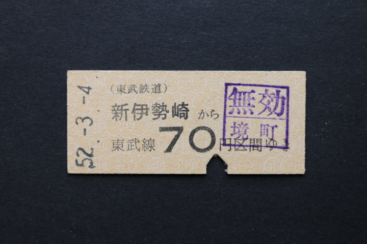 東武鉄道 乗車券 新伊勢崎から 70円区間ゆき