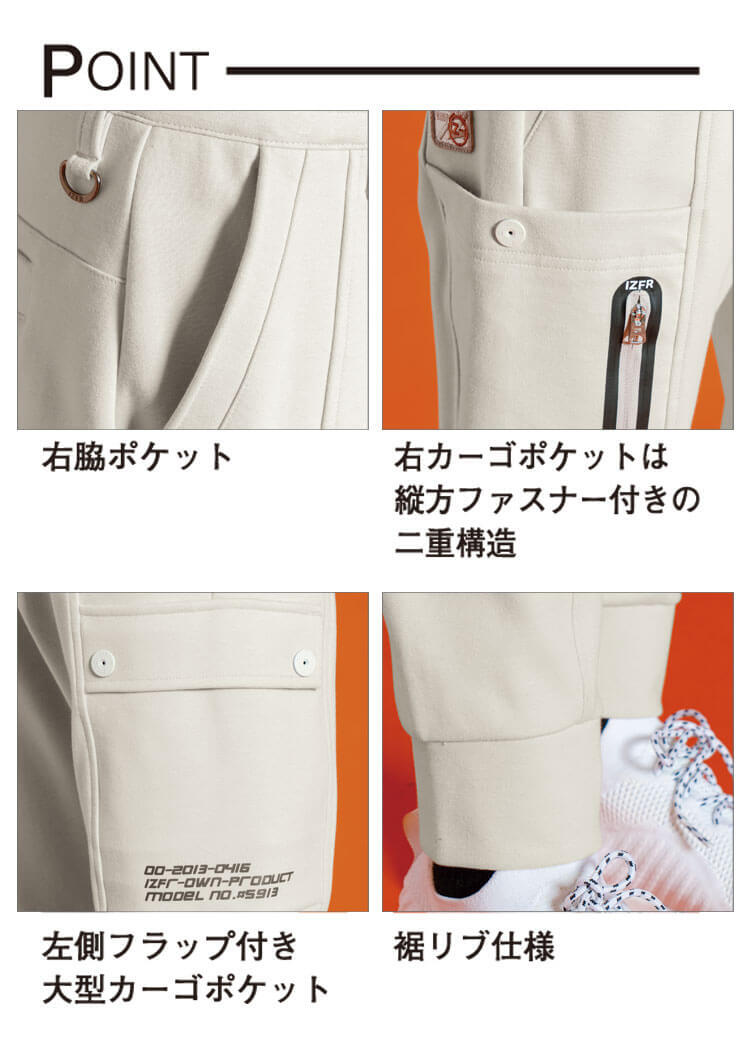 ・右カーゴポケットは縦型ファスナー付きの2重構造