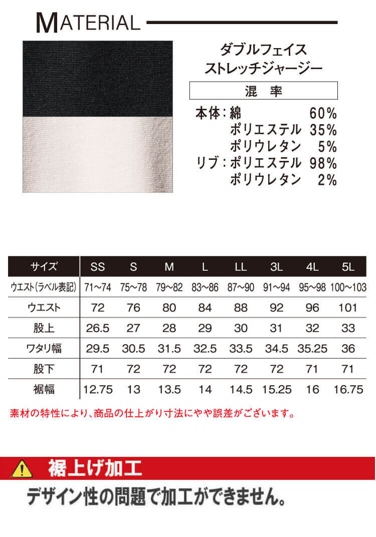 ・混率 :綿60% ポリエステル35% ポリウレタン5%