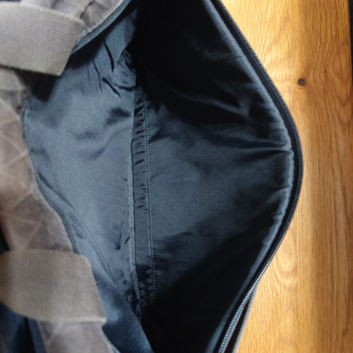 使用に伴う色落ち、隅に擦れ、があります。画像のとおりです。生地は非常に丈夫です。ポケットも多く使い勝手よいです。