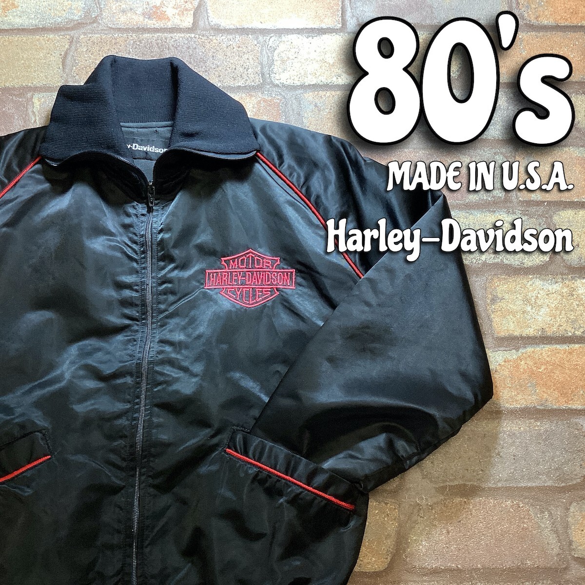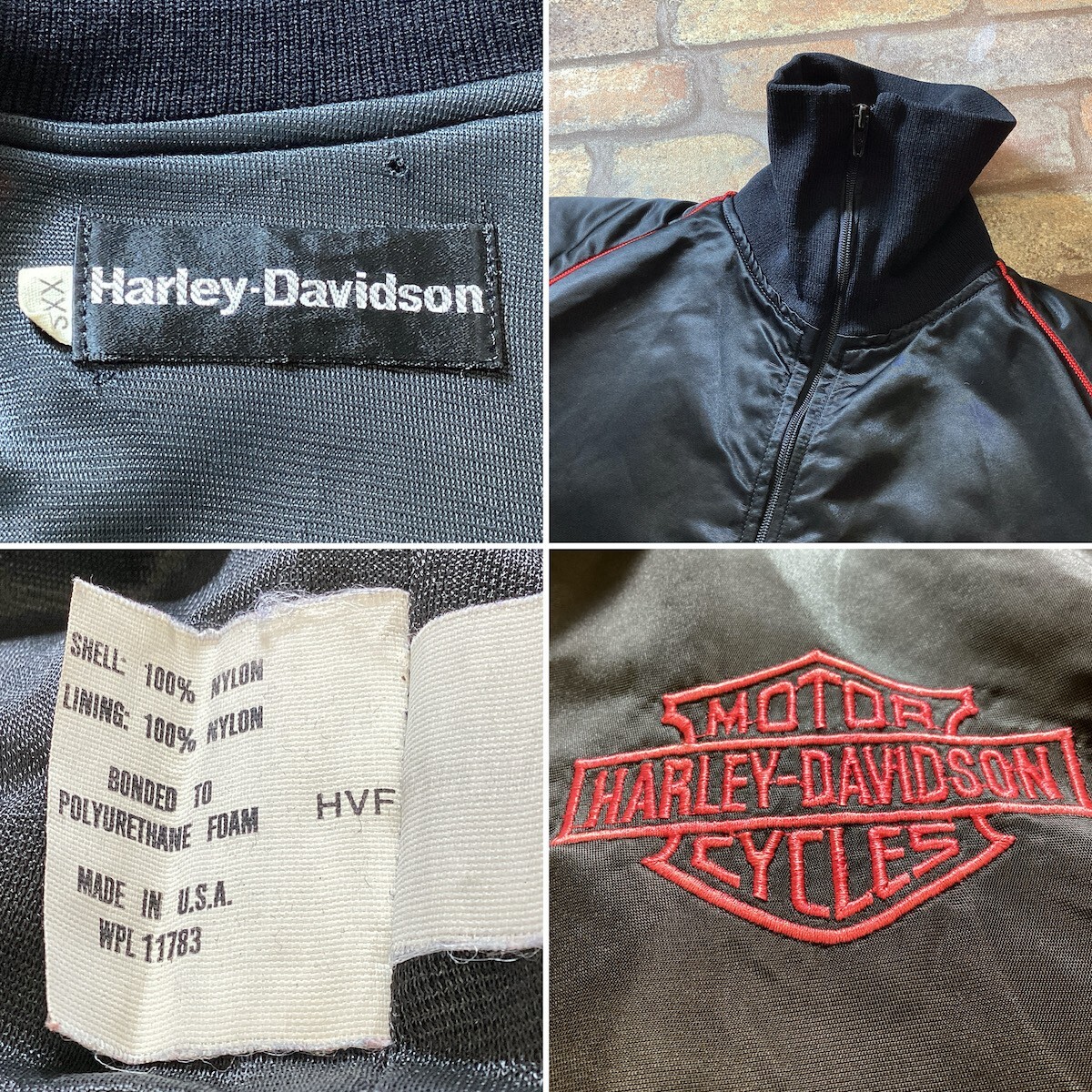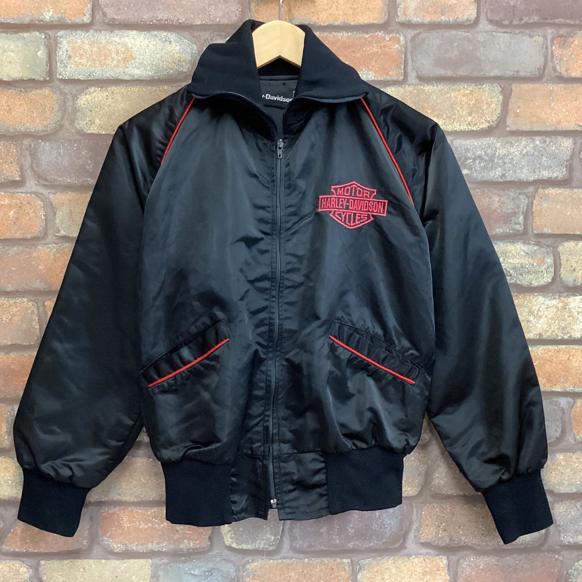 ★80’s USA製★アメリカ直輸入★【HARLEY-DAVIDSON】刺繍ロゴ パイピング ナイロンジャケット ボンバージャケット【XXS】黒 赤 K3-507