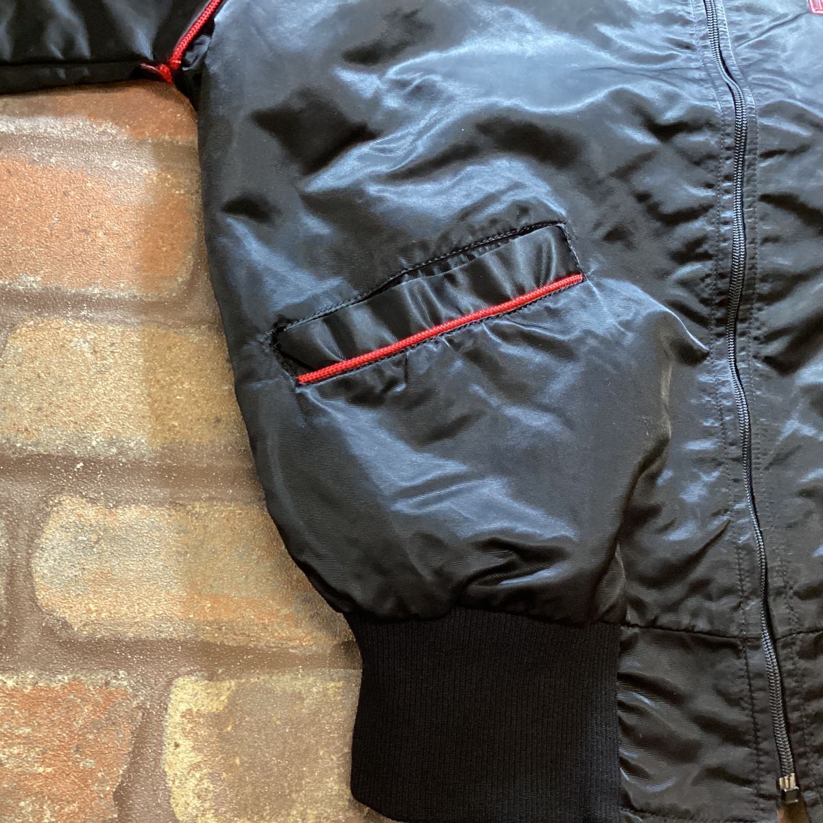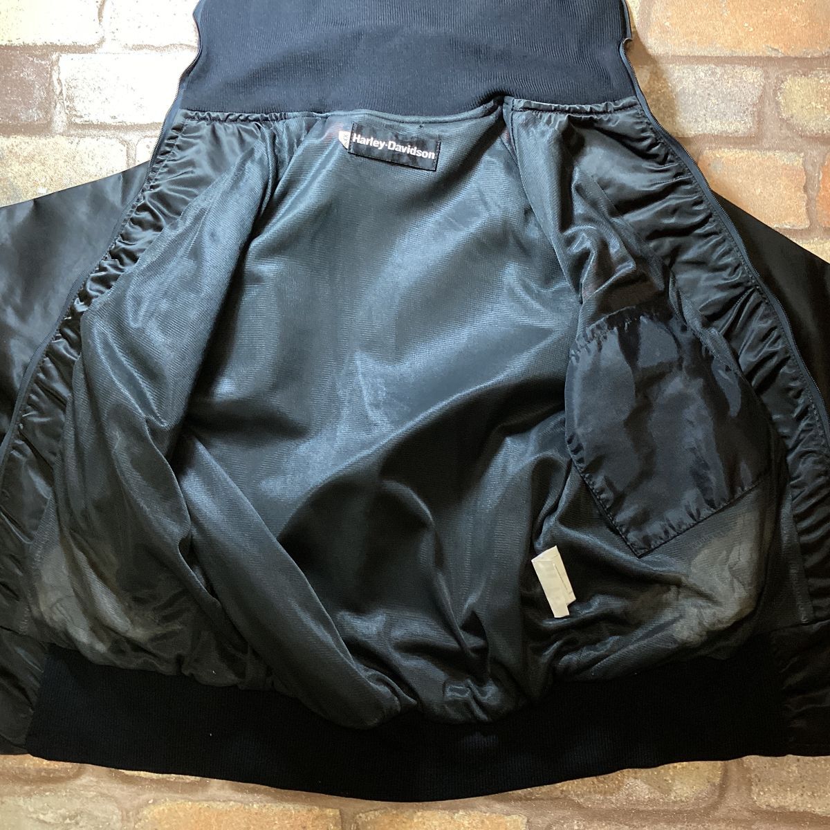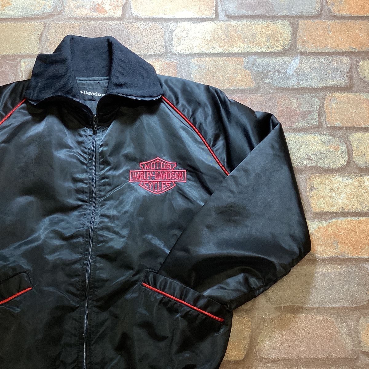 ★80’s USA製★アメリカ直輸入★【HARLEY-DAVIDSON】刺繍ロゴ パイピング ナイロンジャケット ボンバージャケット【XXS】黒 赤 K3-507