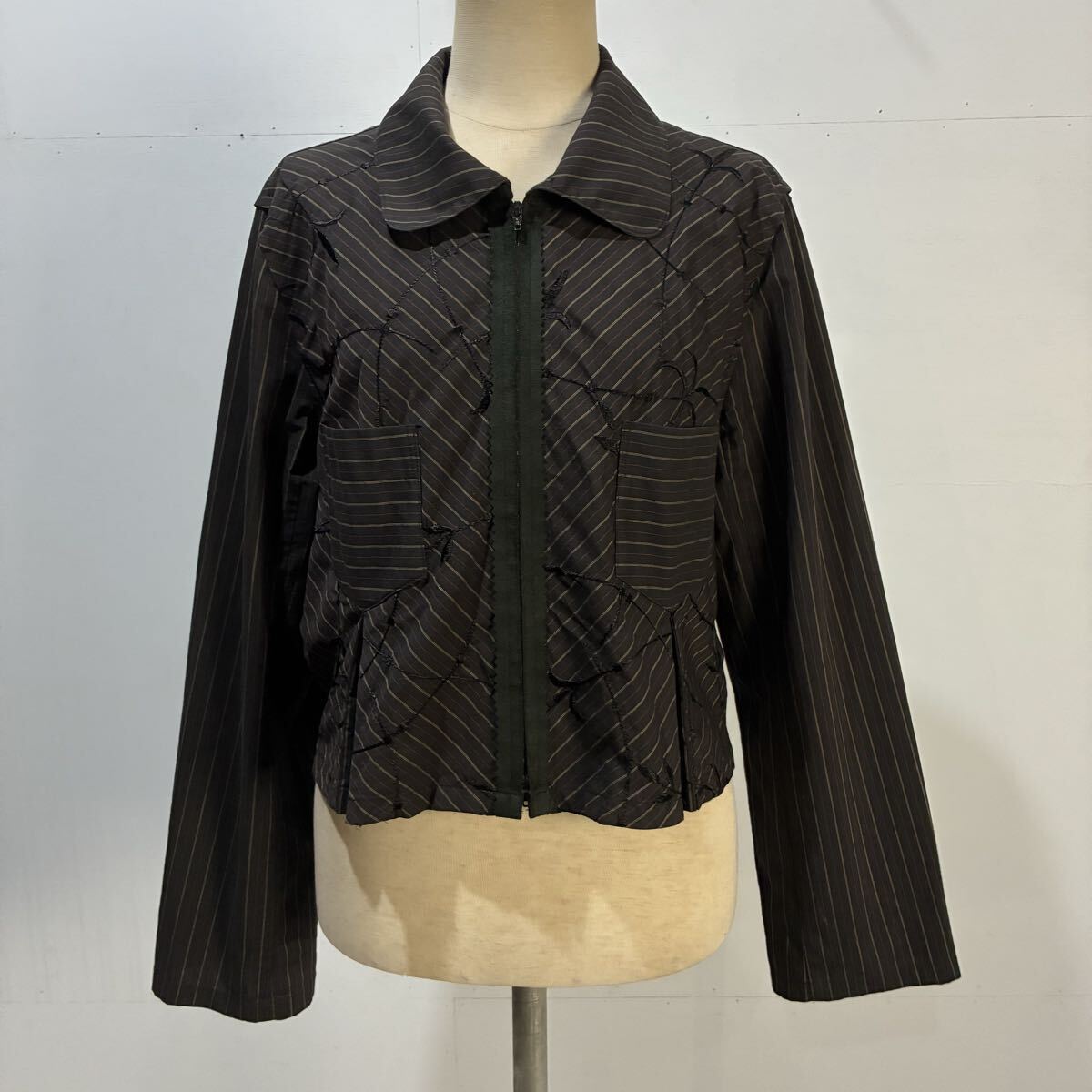t.b センソユニコ sensounico 刺繍ジャケット ショート丈 ジップアップジャケット ブルゾン 総柄 ボーダー柄【レターパックプラス郵送可】Mの出品です。