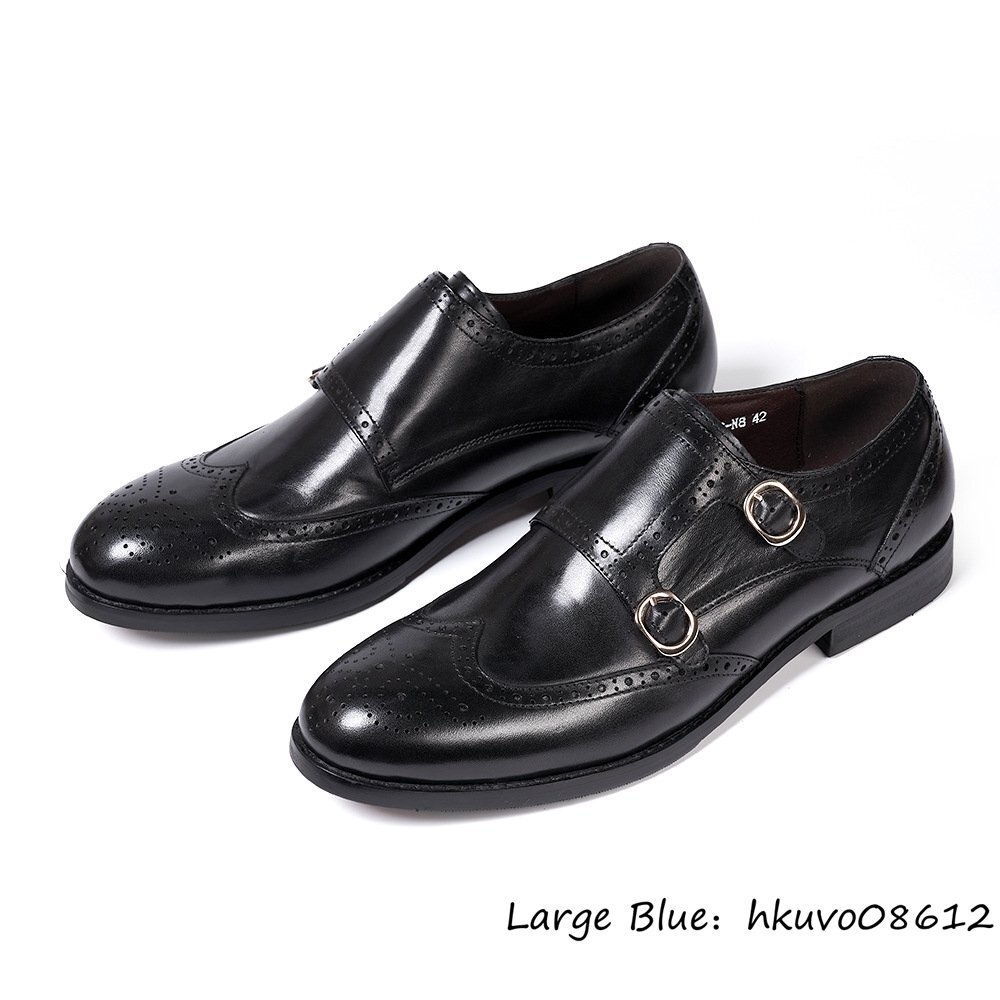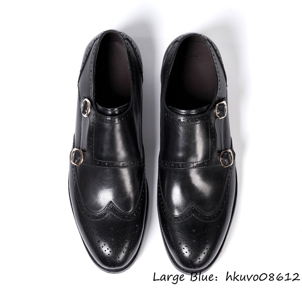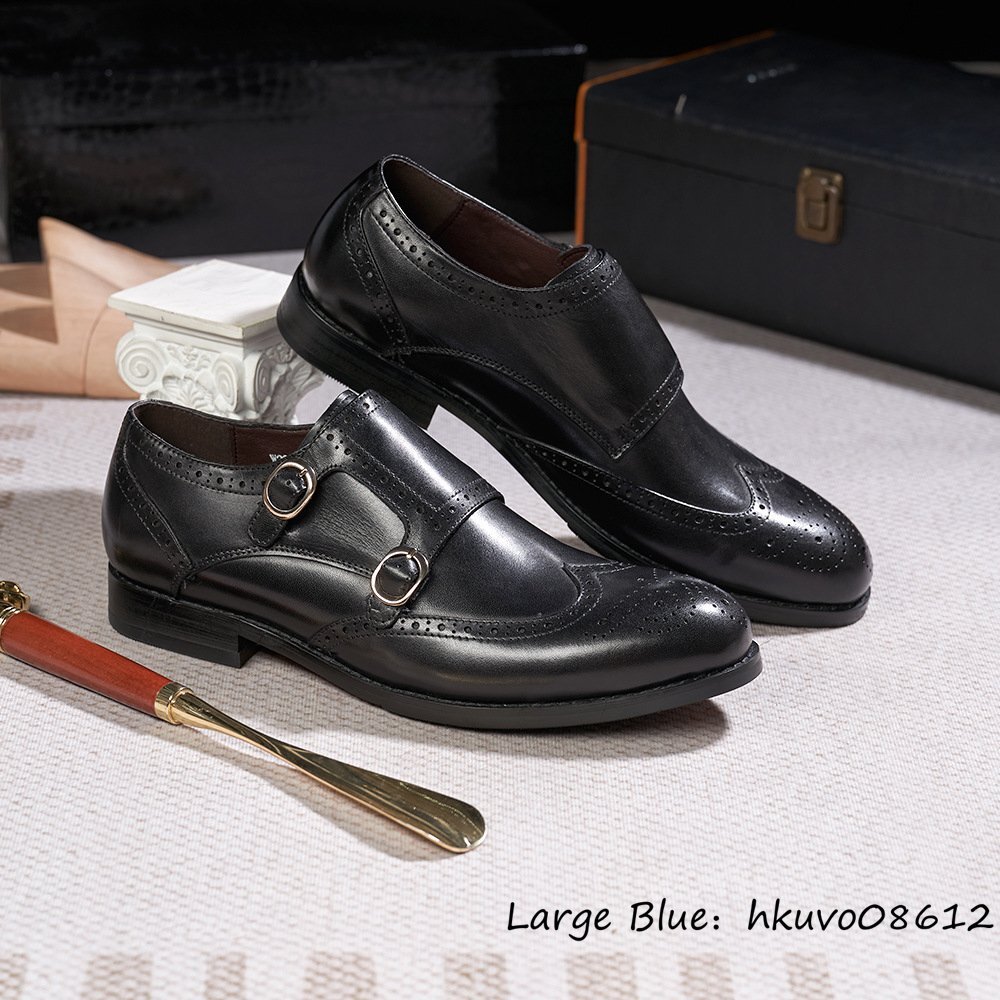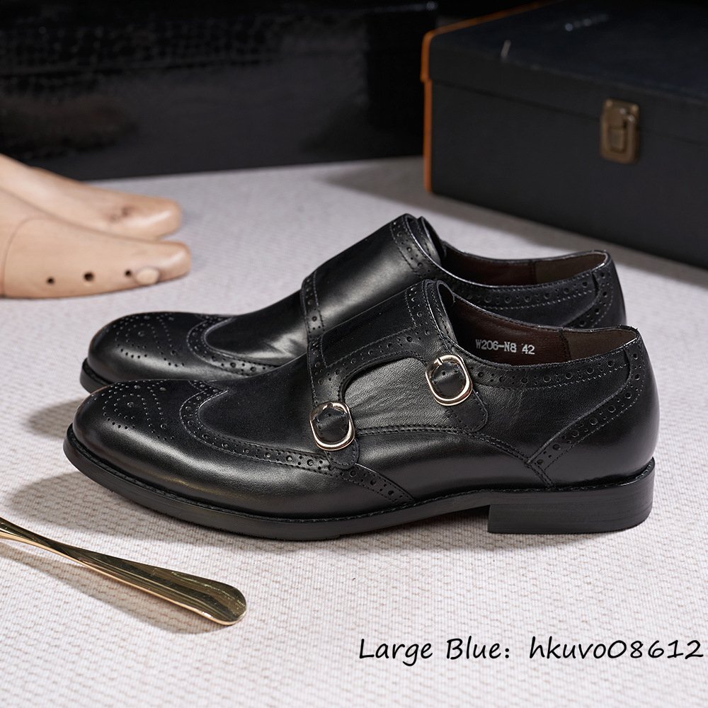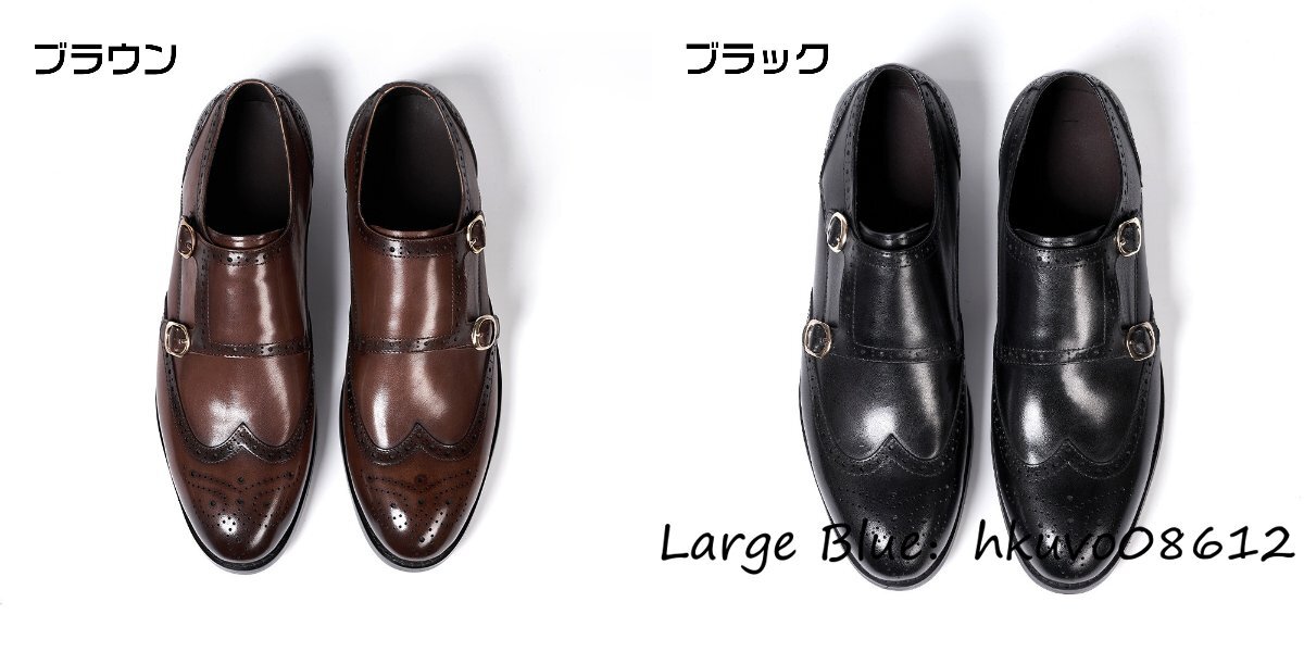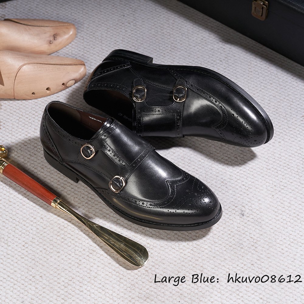 定価9万超◆上級牛革 メンズ 本革 レザーシューズ ダブルモンクストラップ 職人手作り 彫り ビジネスシューズ 紳士靴 革靴 ブラック 24.5cm