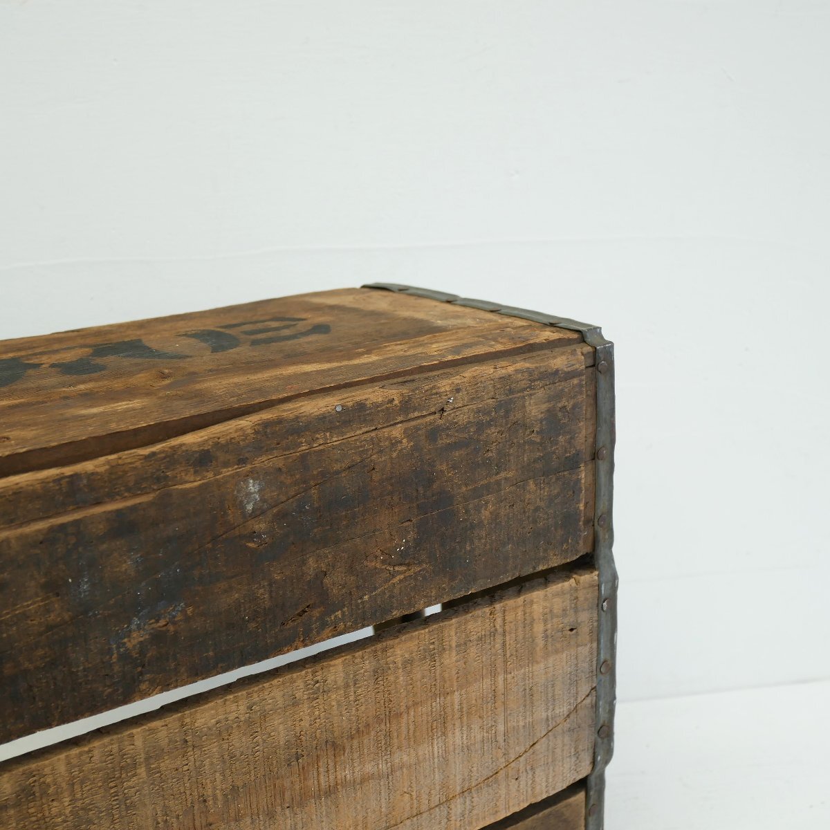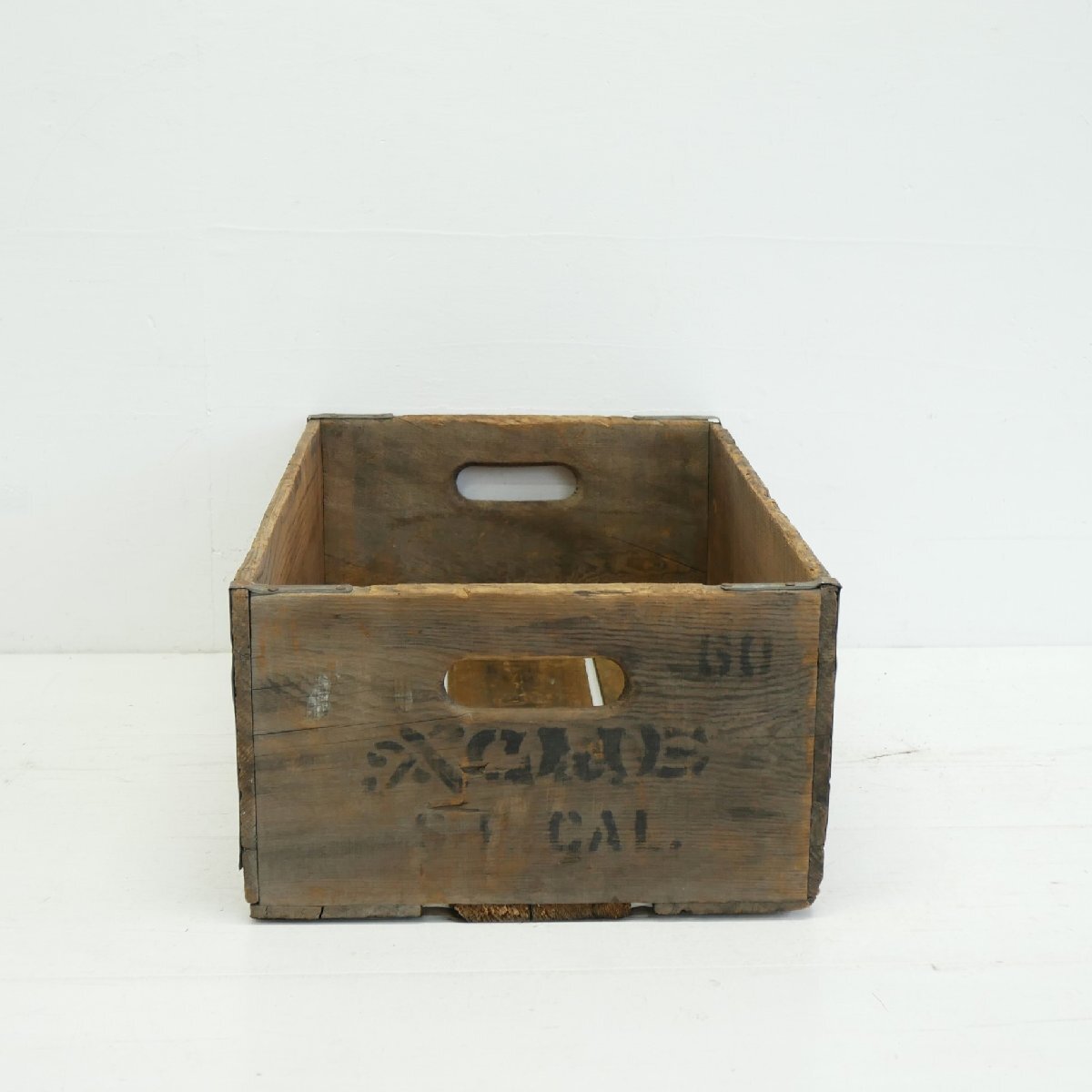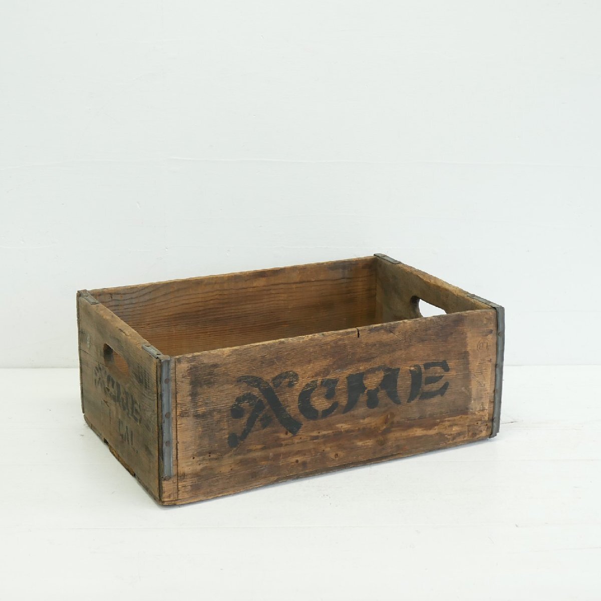 商品説明 explanation | 1960年製造の「ACME」と印刷されている木箱です。 補強用の金属枠が付いているため、瓶などの運搬に使われたと思われます。 ヴィンテージ木箱を、ディスプレイ小物や店舗什器にいかがでしょうか。 |
