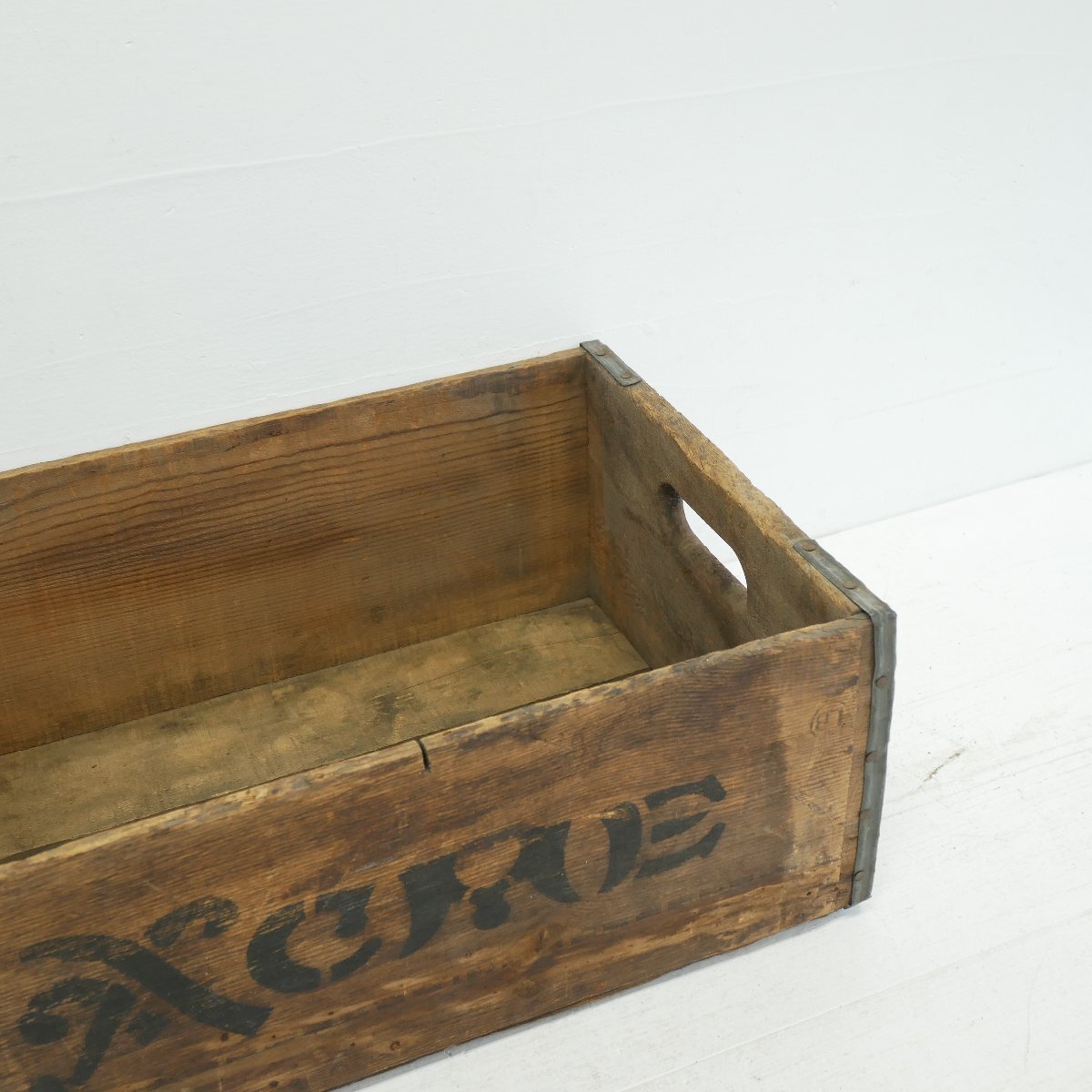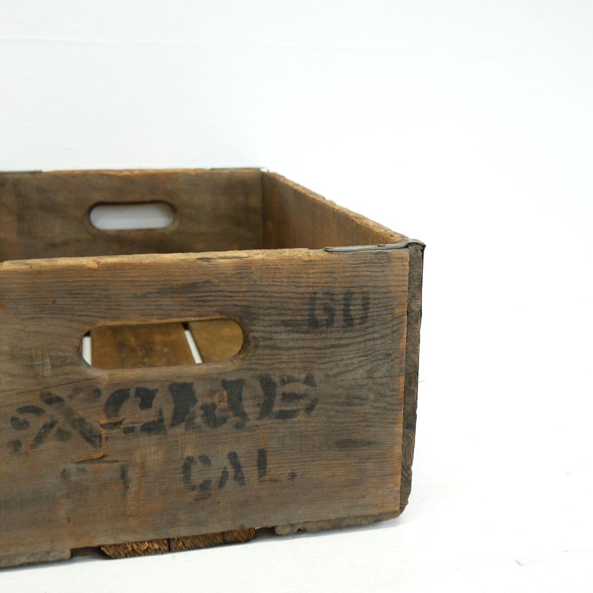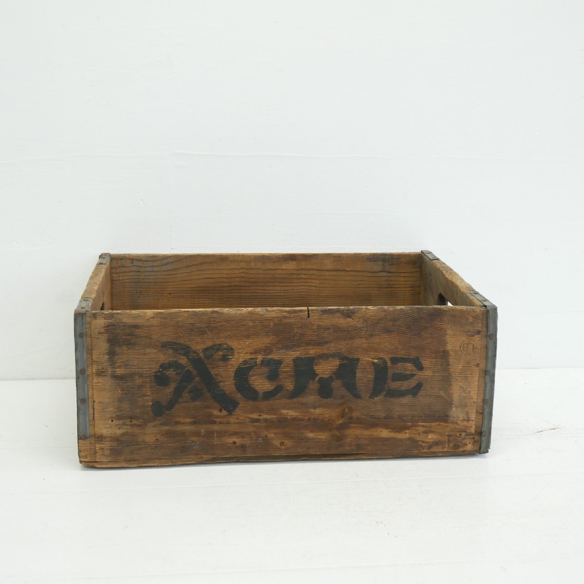 商品説明 explanation | 1960年製造の「ACME」と印刷されている木箱です。 補強用の金属枠が付いているため、瓶などの運搬に使われたと思われます。 ヴィンテージ木箱を、ディスプレイ小物や店舗什器にいかがでしょうか。 |