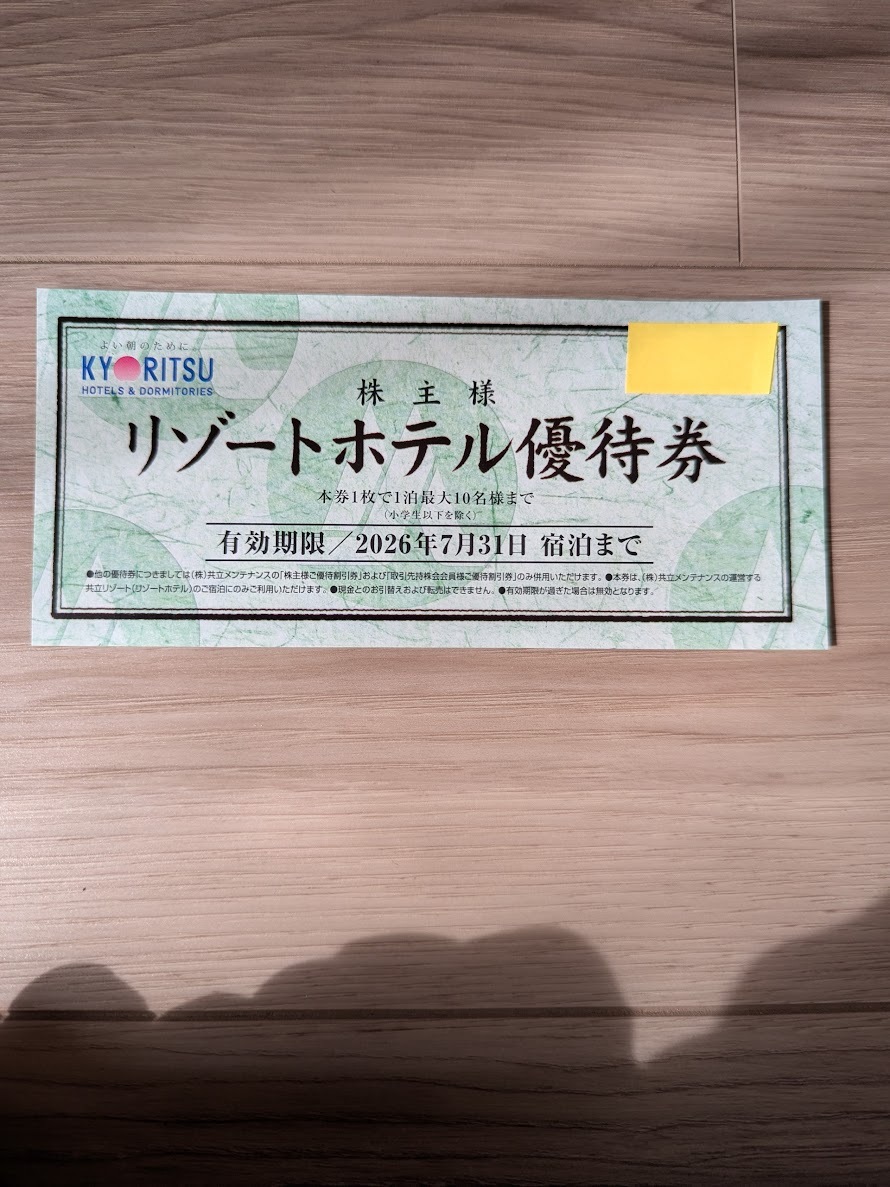 共立メンテナンスの株主優待券です。