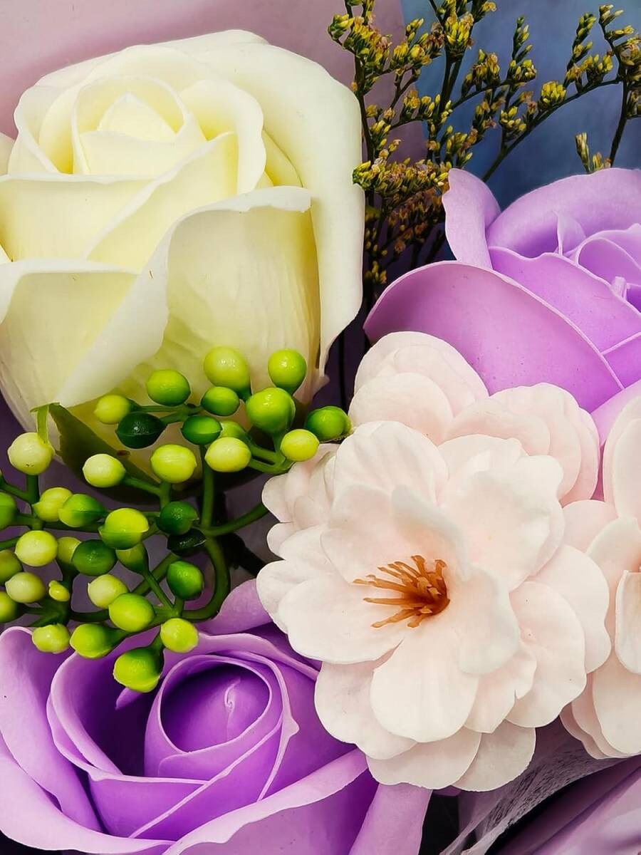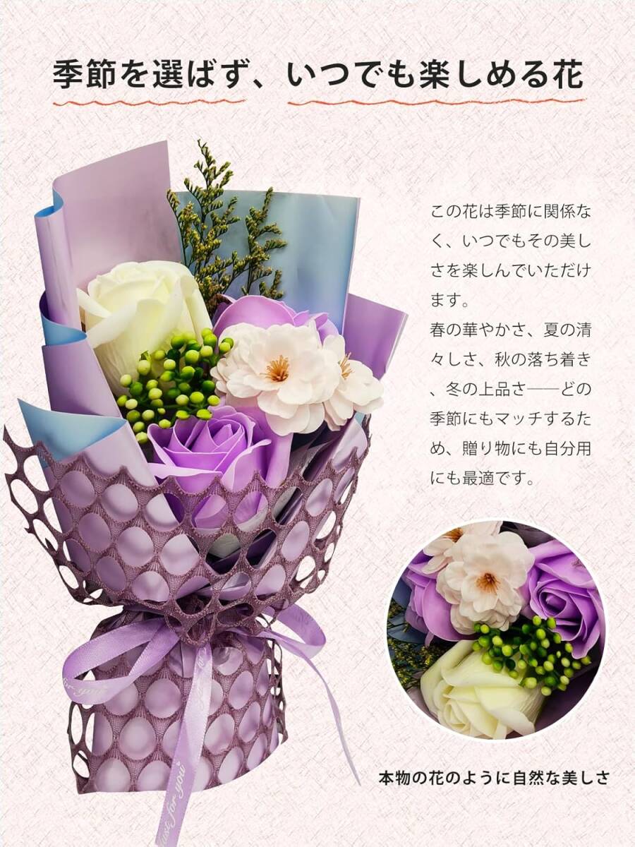 • 【花粉なしで安心ギフト】花粉を含まないソープフラワーは、花粉症やアレルギーの方にも安心して贈れるギフトです。優雅な香りを楽しみながら、水やりや手入れの手間も不要。忙しい日常に癒しを与えてくれます。