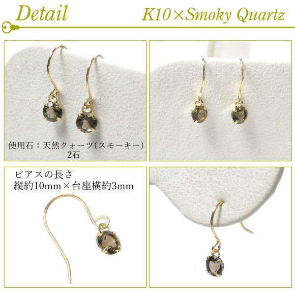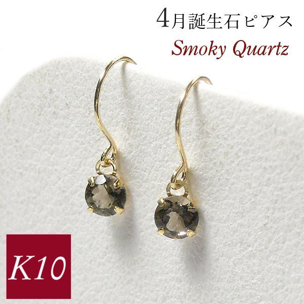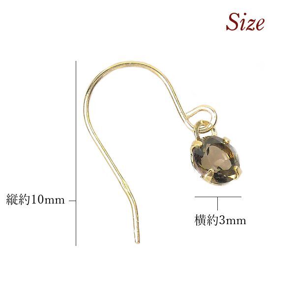 スモーキークォーツ ピアス 揺れる 一粒 フック 4月誕生石 k10 10金ゴールド 10k 天然石 ジプシー レディース 50代 40代 60代 30代 20代