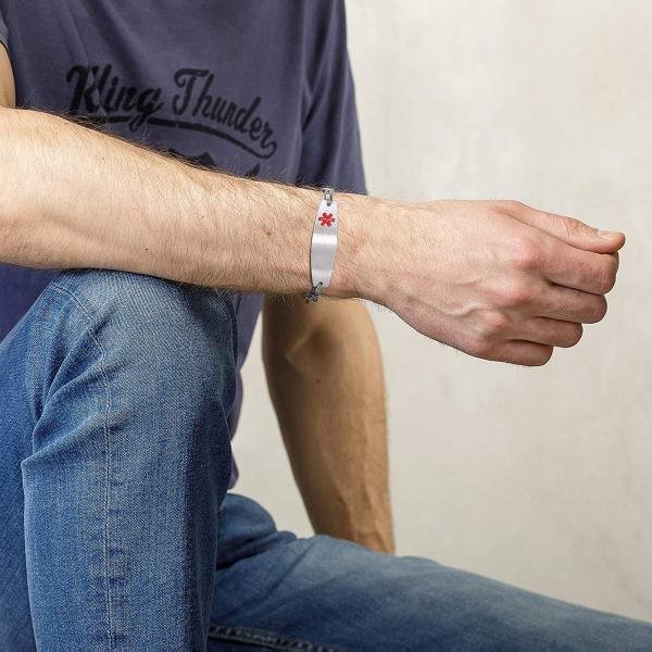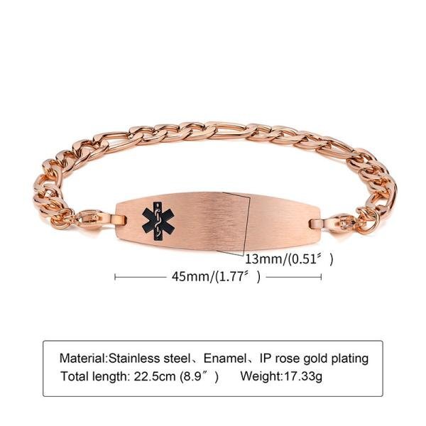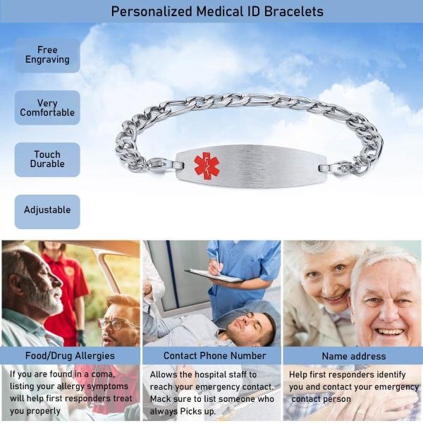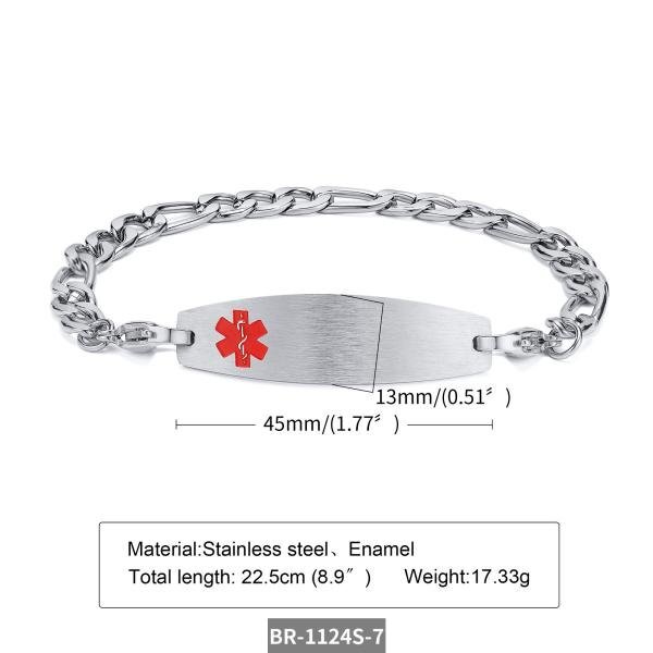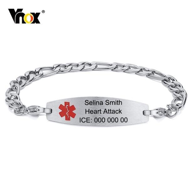 フリー 刻印 メディカル ブレスレット メンズ レディース ステンレス スチール フィガロ チェーン ID バングル エマージェンシー コンタクト リマインダー ジュエリー無料刻印