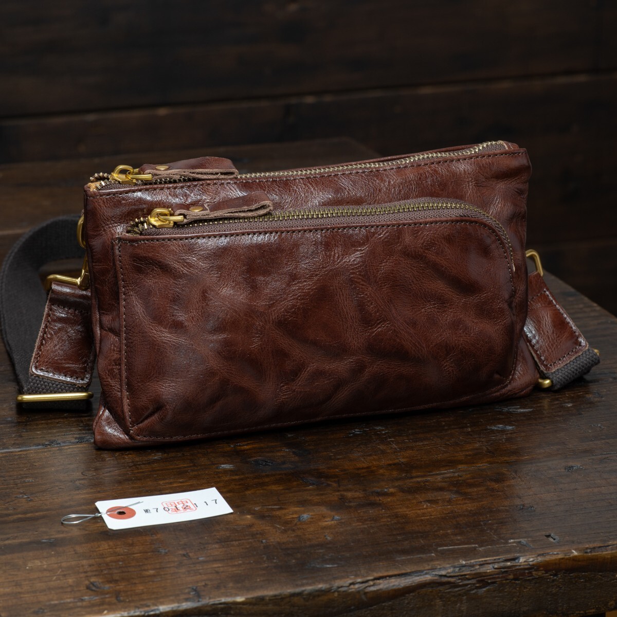 ミニショルダー【牛革】メンズ バッグ ミニバッグ ショルダーバッグ 本革 新品 未使用 送料無料 1円 斜めがけ バック 茶 ブラウン 田中革具