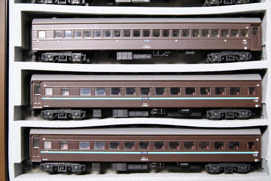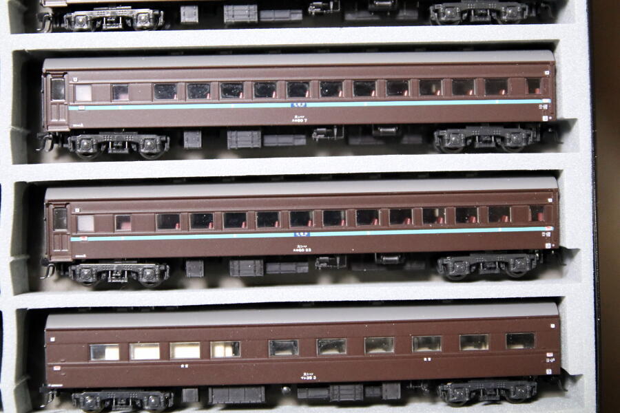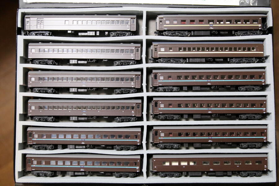 当商品は、KATO  10-534/535を基に、 展望車をマイテ58に交換し、マイ38を増結したフル12両編成セットです。