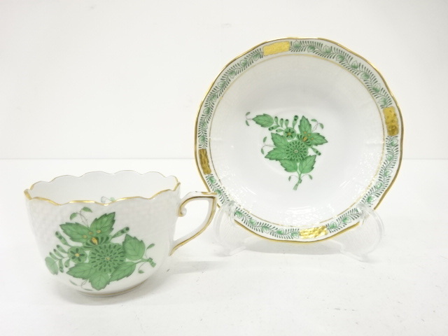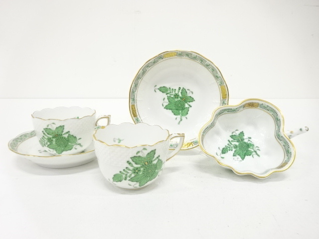 HEREND ヘレンド アポニーグリーン モカカップ&ソーサー ペア オープンシュガー セット (AJB3D-049)