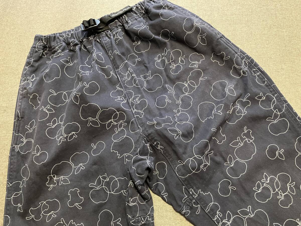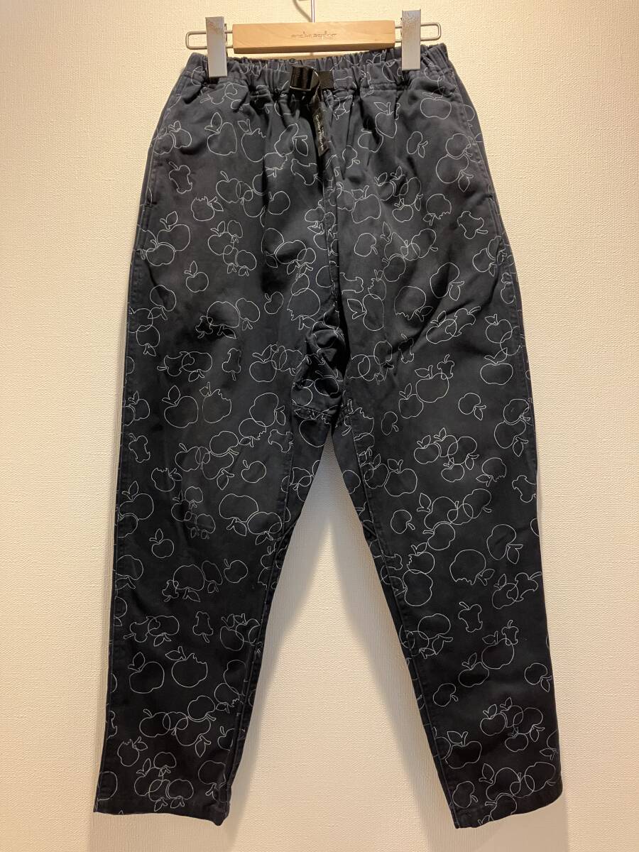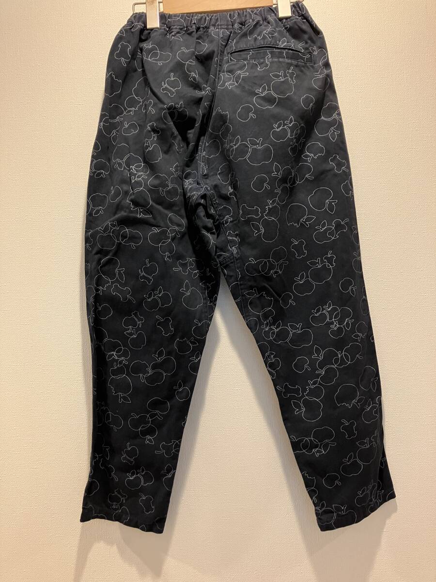 ネイビーのお色の綿100%のリンゴ柄がお洒落なパンツです。