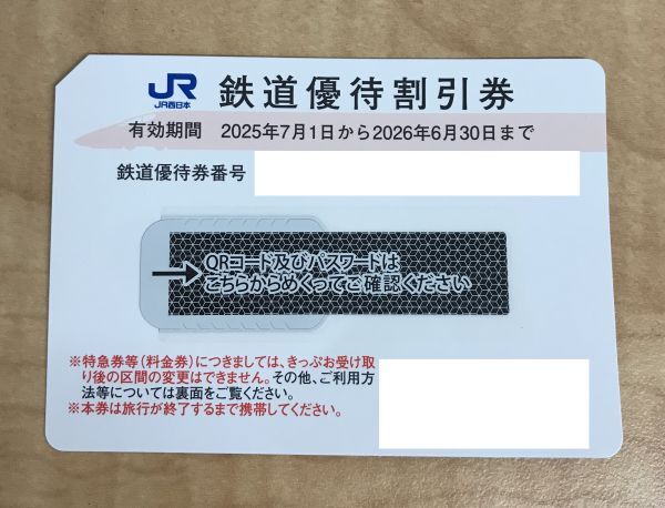 JR西日本 株主優待鉄道割引券 1枚 2026年6月末まで 運賃5割引 【大黒屋】