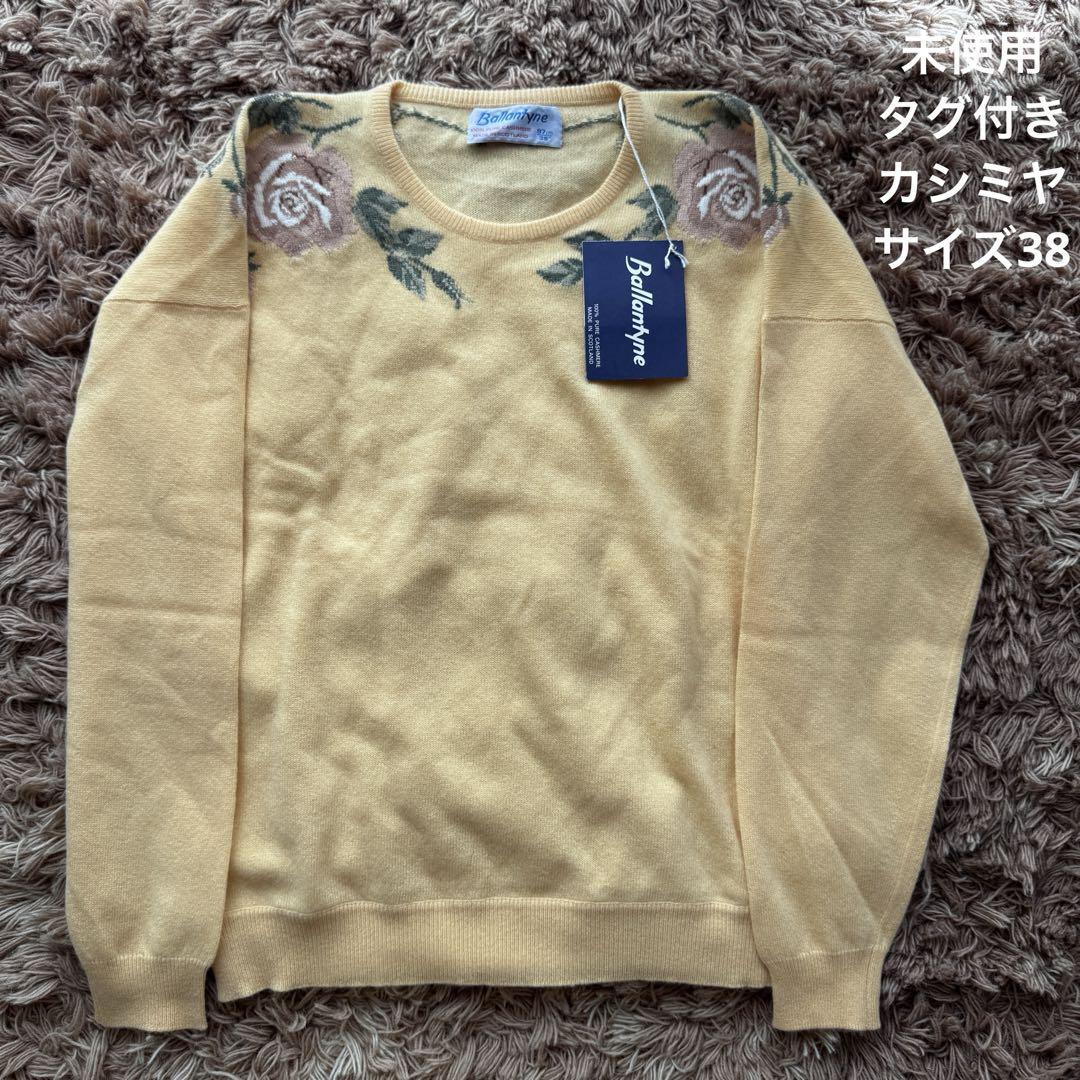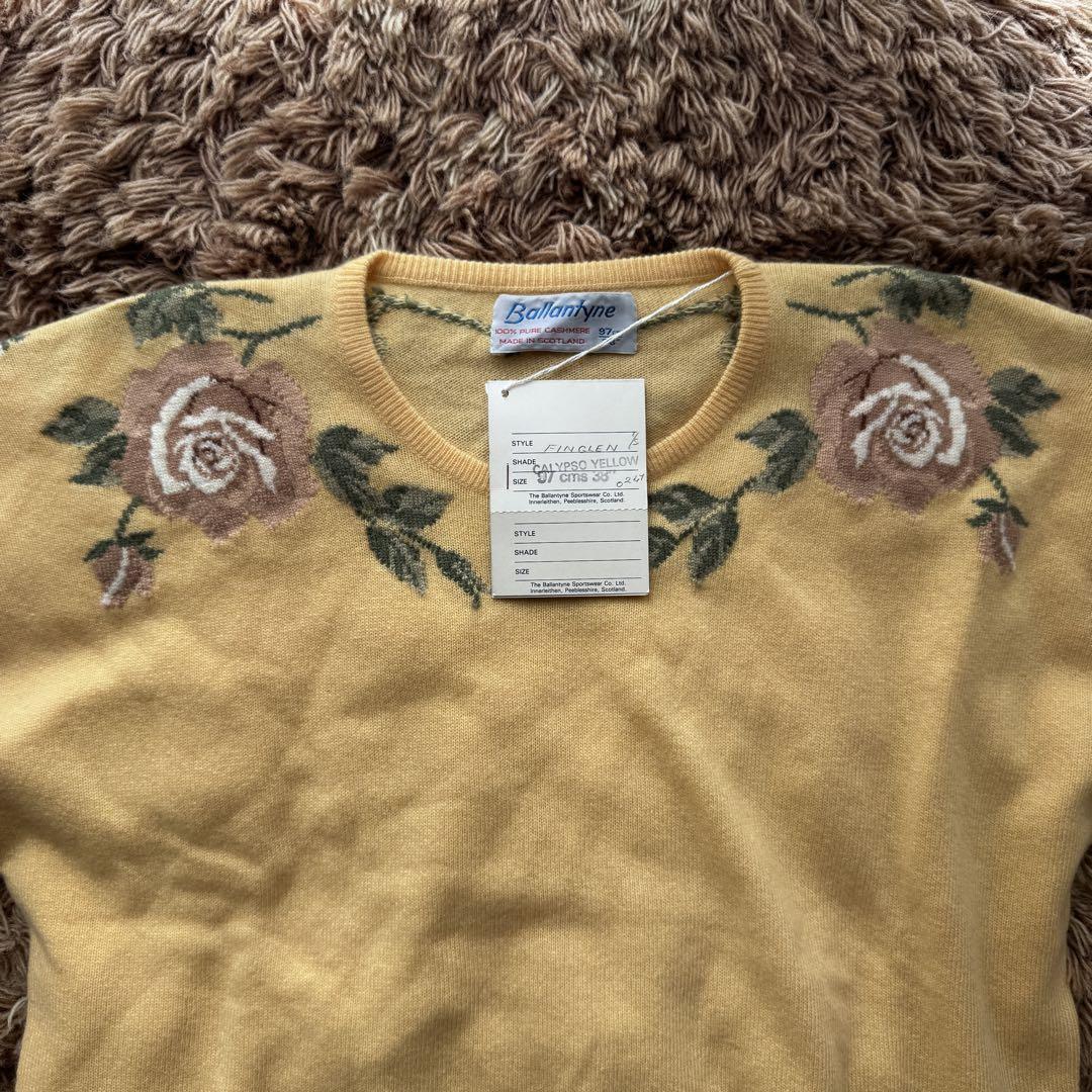 【未使用】バランタイン カシミヤ ニット セーター 38 刺繍 レディース 入手困難 希少品 Y2K Made in Sctoland スコットランド製 デッドストック