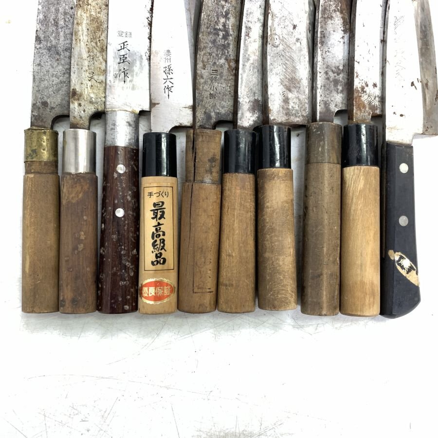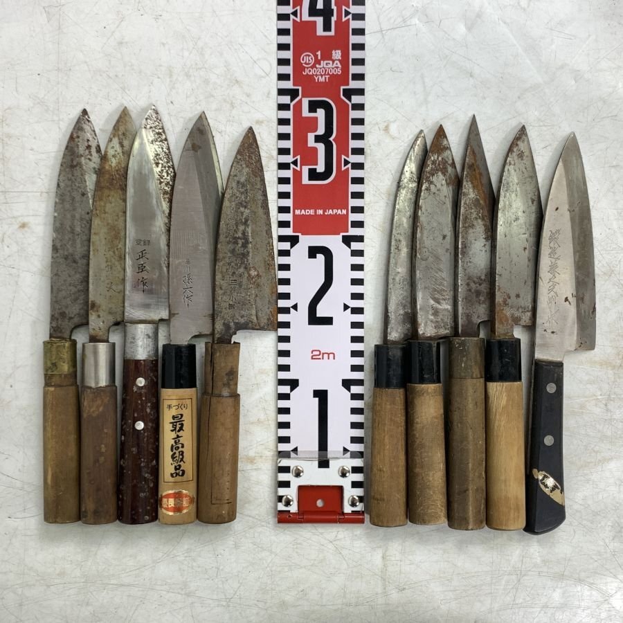 【まとめ売り】出刃包丁等の10本セット 濃州孫六/正臣/房近/鍛造藤之光/奈良若草山三條小鍛冶/九十九嶋/他 和包丁等*ジャンク品【福岡】