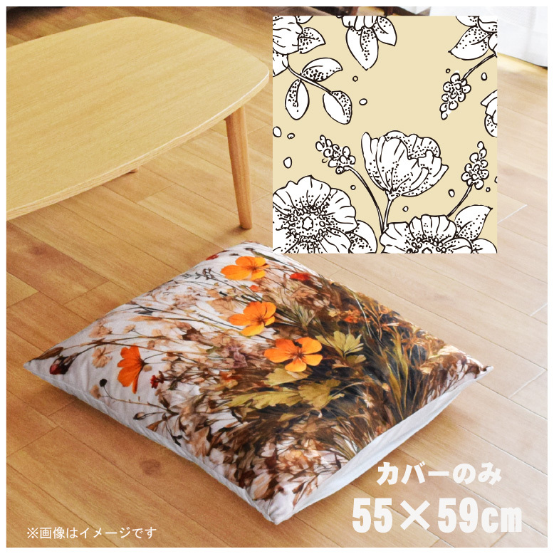 座布団 座布団カバー 約55×59cm カバーのみ 単品 北欧 洗える ファスナー付 リビング イラスト 転写プリント CSC-B090花柄ライン